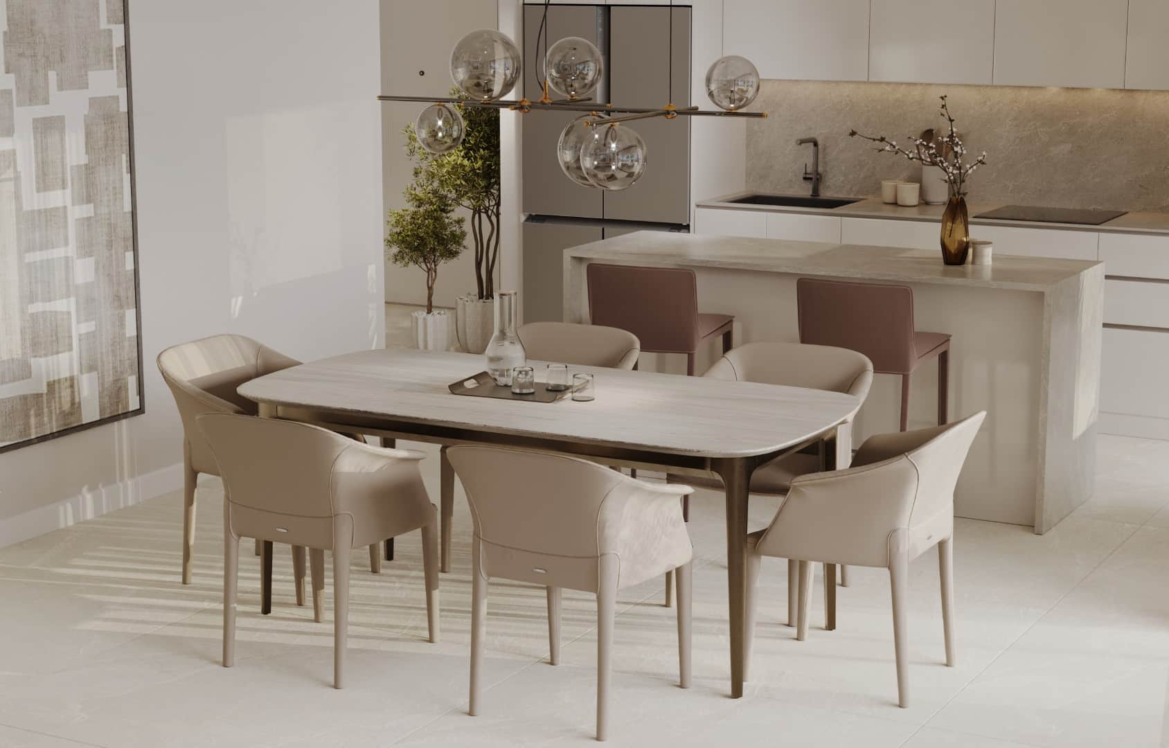 Every residence is of highest standard with open plan layouts, large glass windows, premium porcelain flooring, aerothermal systems, underfloor heating and smart home systems while kitchens are equipped with Italian cabinetry and Siemens appliances whereas bathrooms feature Italian fittings, walk in showers and customizable finishes.