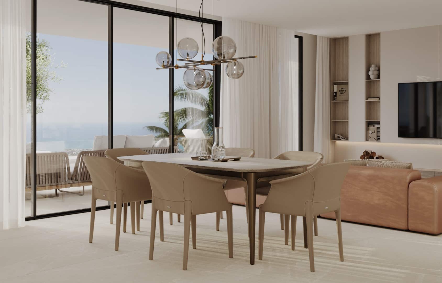 Emerald View Club Residences – It is an exclusive gated community consists of 18 midrise blocks offering 133 units of apartments, penthouses, garden villas and sky villas ranging from 2 bedrooms to 4 bedrooms with a built size ranging from 80m² to 235m² in the hills of Mijas just minutes from the vibrant coastline with panoramic sea and valley views from spacious private outdoor terraces spanning 22m² to 260m² designed for leisure and enjoying the views of Costa del Sol with Mediterranean sea.