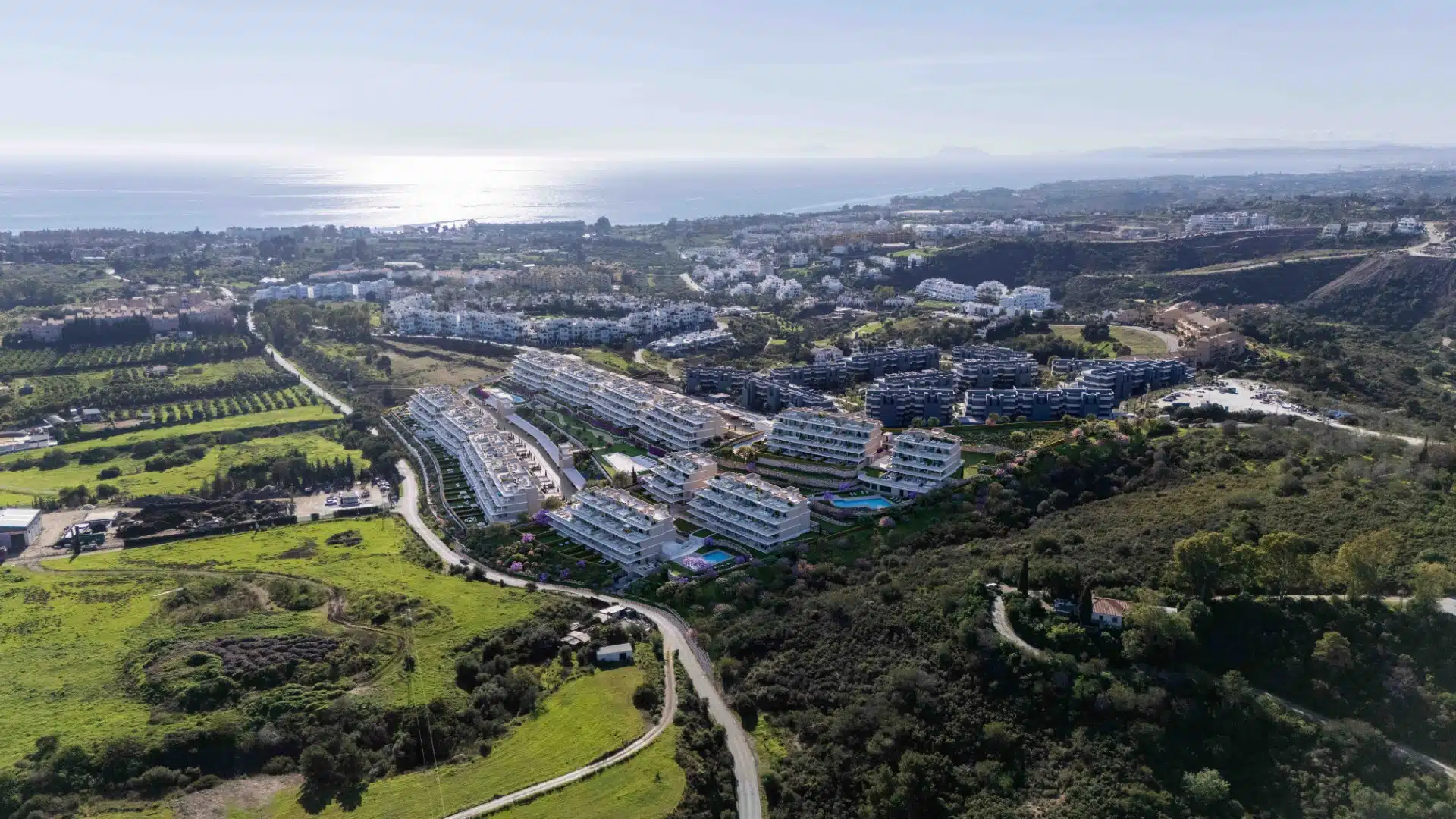 The community offers rooftop solariums in the penthouses providing panoramic views of Mediterranean and surrounding mountains while ground floor units come with private gardens and all residents can enjoy amenities like two outdoor swimming pools, beautiful landscaped gardens, fully equipped gym, spa with sauna, turkish bath and a modern coworking space for professionals and entrepreneurs offering a perfect balance with eco friendly design and energy efficient living.