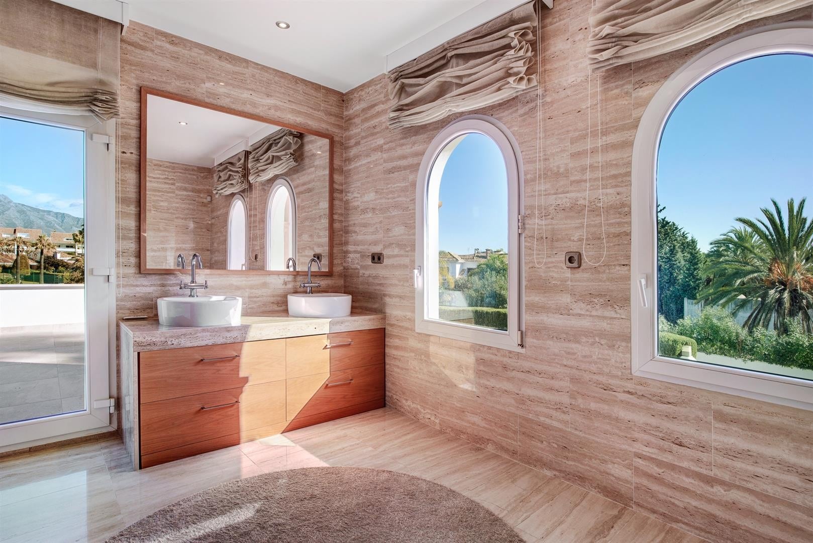 This majestic villa is located in in a prestigious and secure urbanization of Guadalmina Baja, San Pedro de Alcantara. Nestled in a serene and tranquile location and just moments away from beach, residents can enjoy a lifestyle that seamlessly blends convenience and sophistication. With a plot of 1,880 m2, Villa Santa Clara has more than 500 m2 built and about 200 m2 of terraces and porches. Built with high quality materials and finishes. The villa boast 6 spacious bedrooms with ensuite bathrooms. Each room has open views of the sorroundings. The house is surrounded by mature and lush gardens. In addition, it has underfloor heating throughout the house and solar panels....