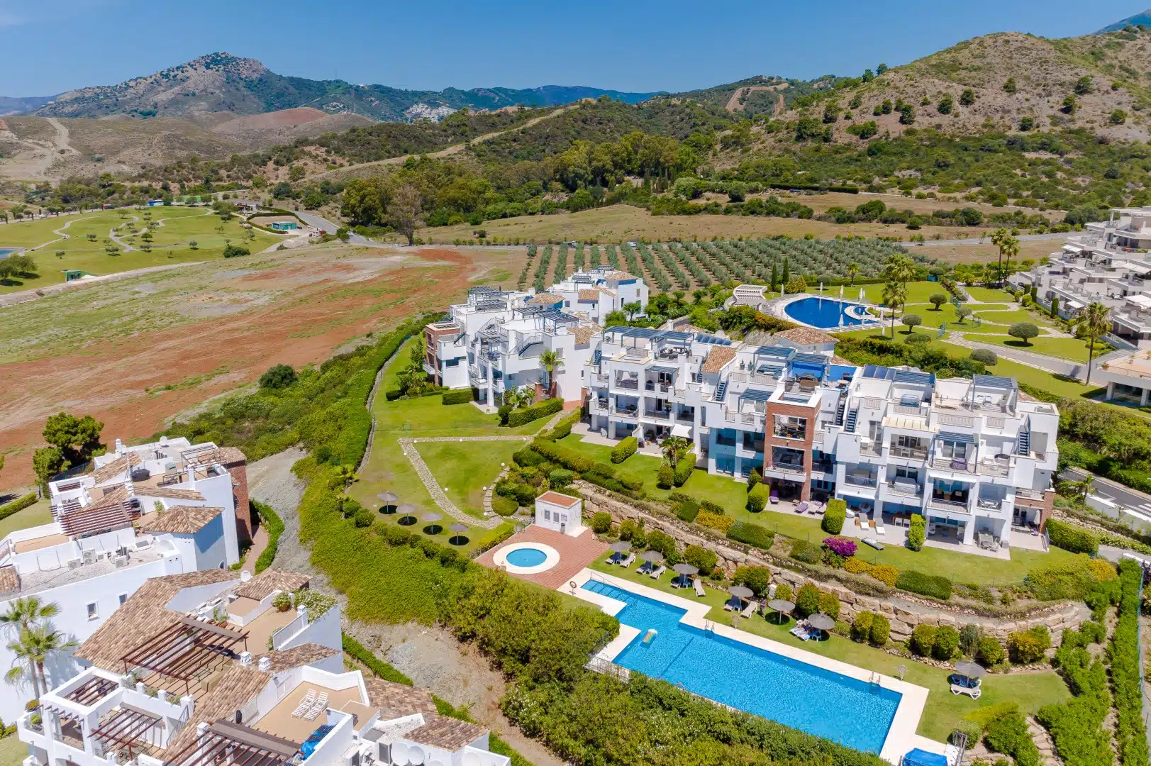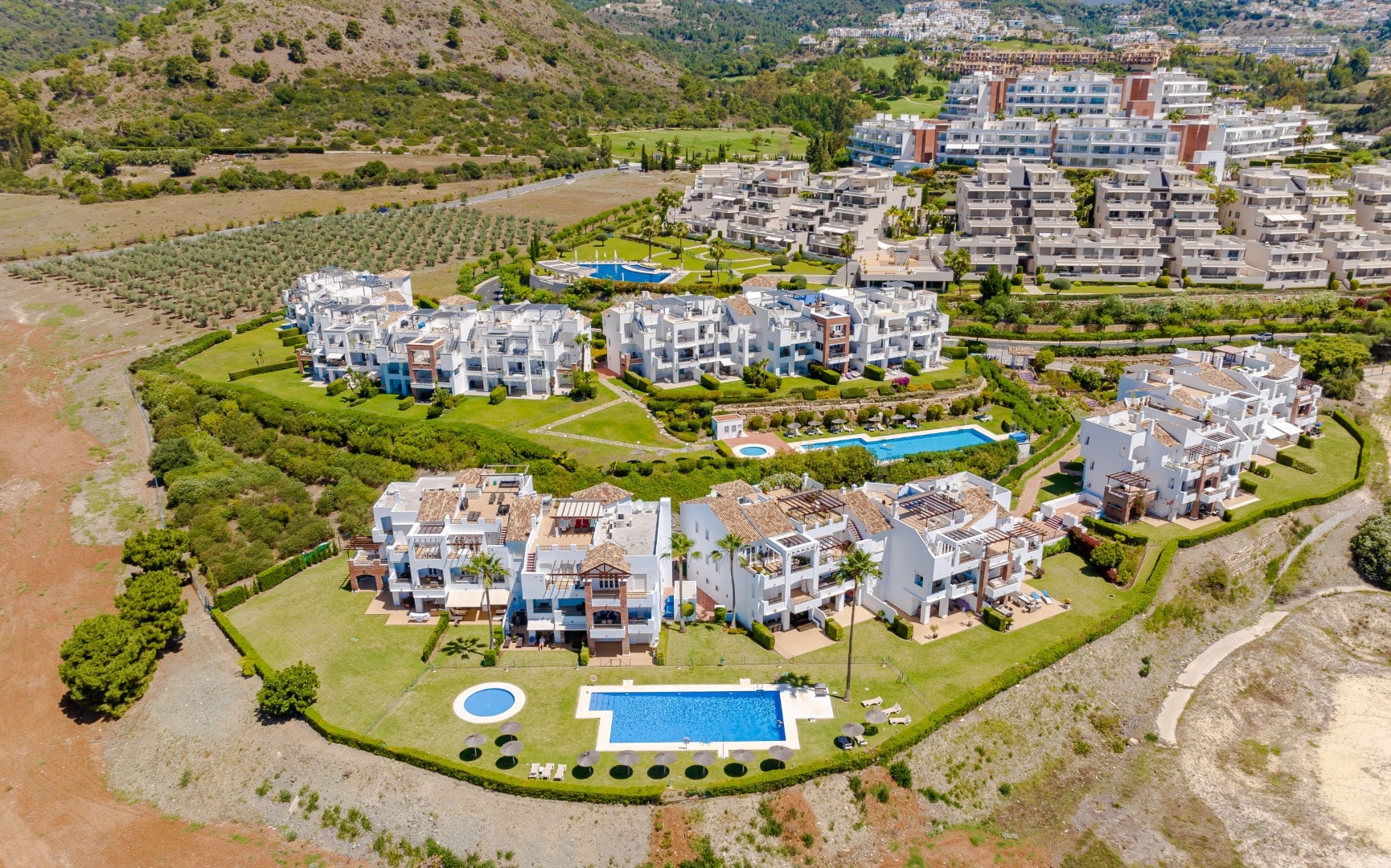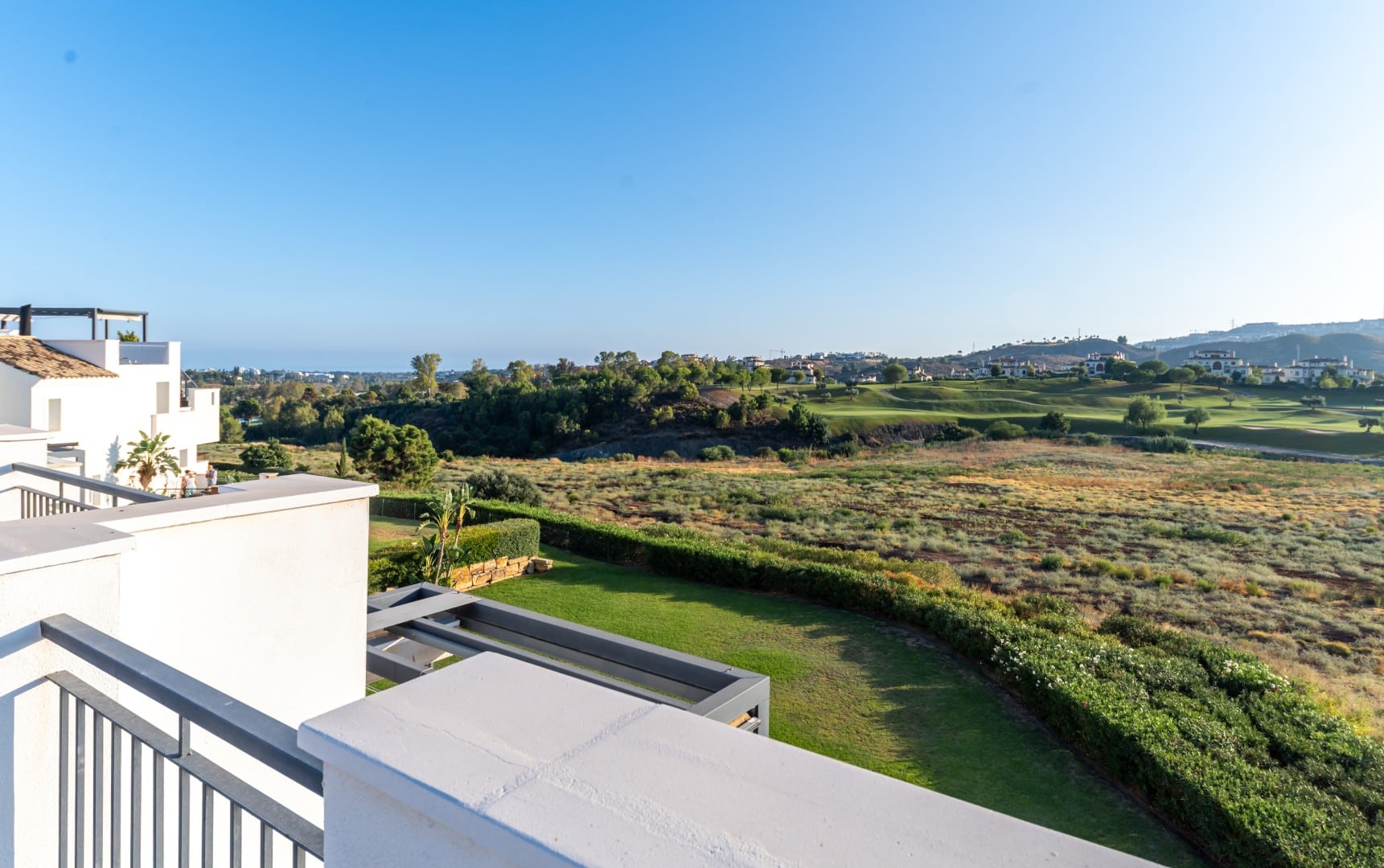 Frontline golf 3-bedroom penthouse with stunning views in Los Robles de Los Arqueros, Benahavis