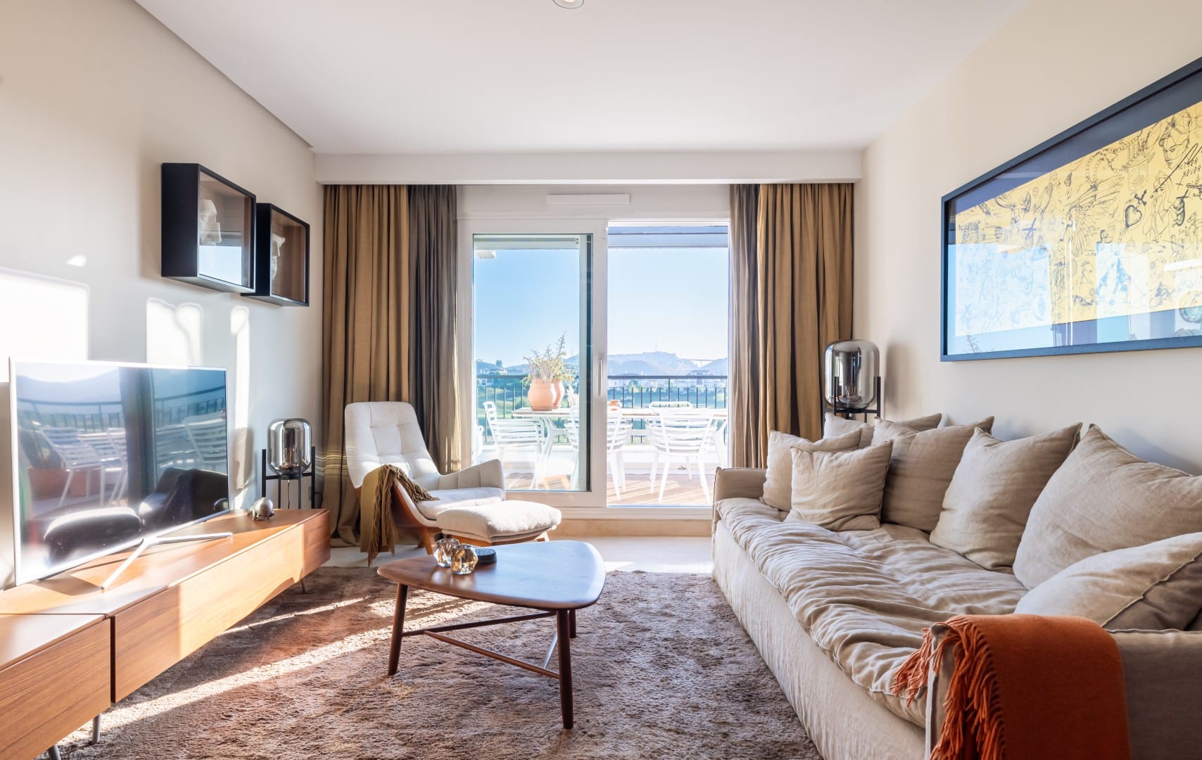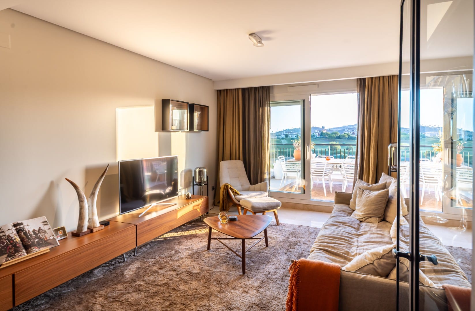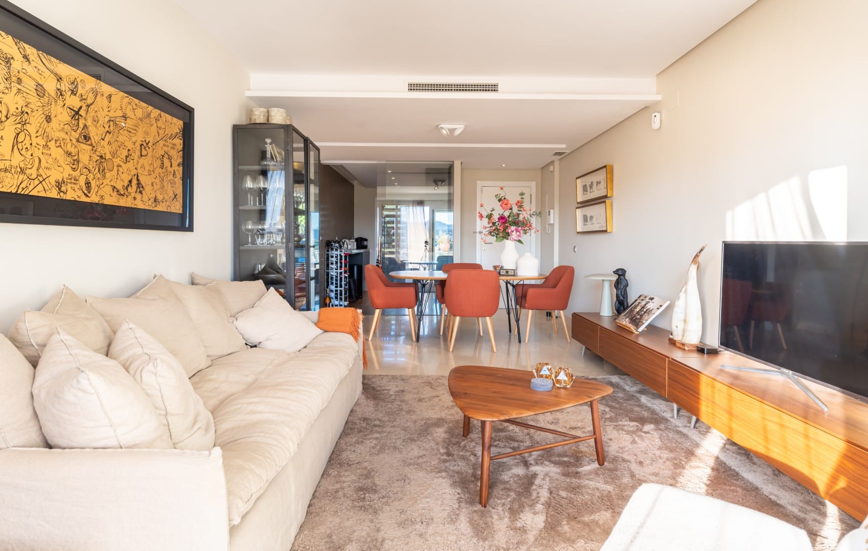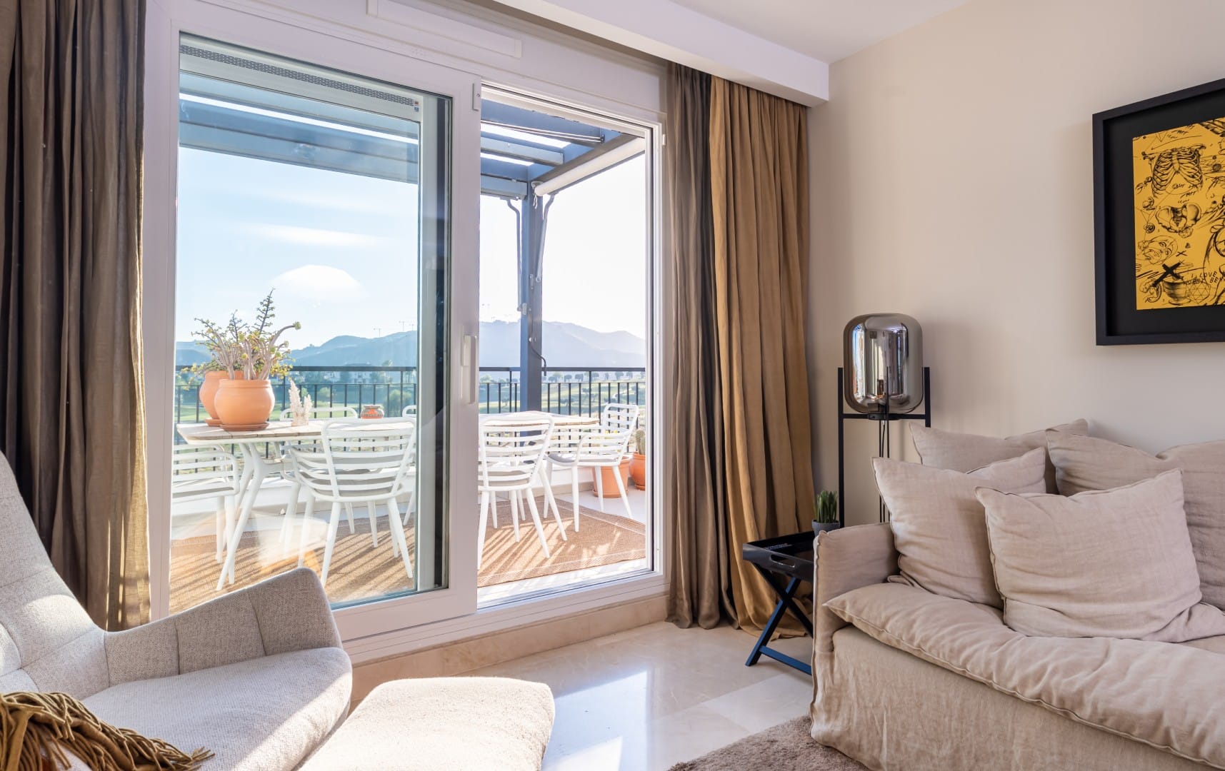 From the living room through the terrace your eyes will be drawn to the spectacular panoramic views of the golf course, mountain range towards the sea.
