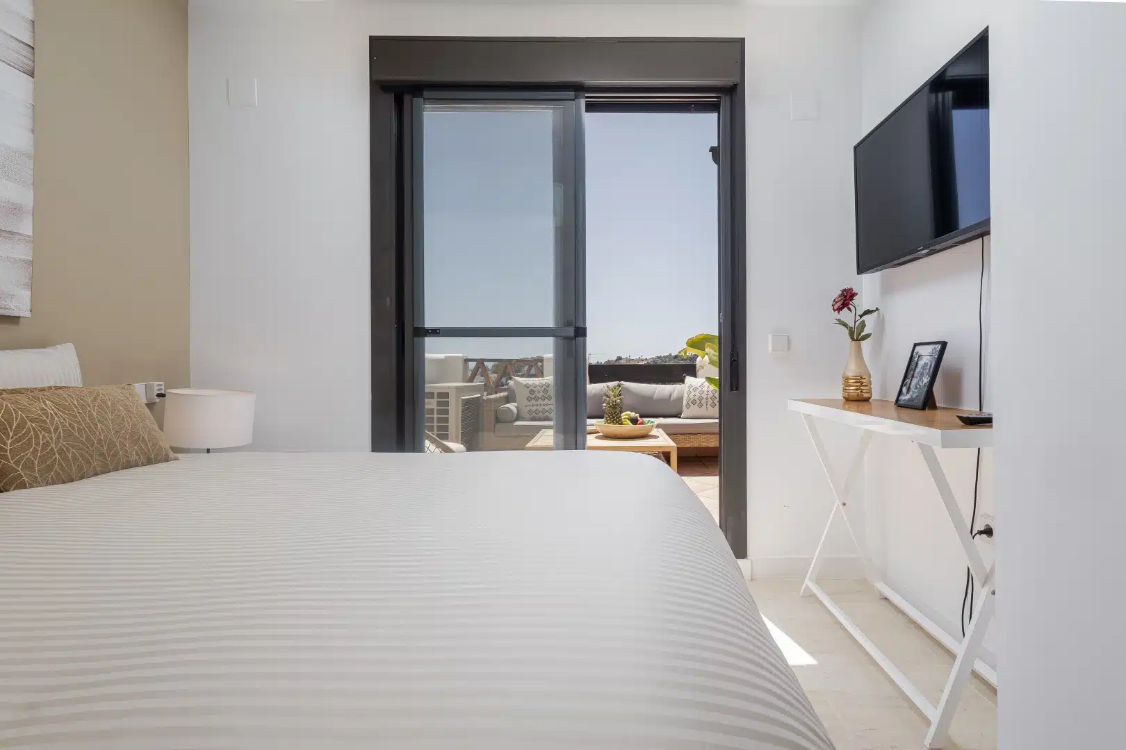 Stepping outside, you’ll find a generously sized private terrace, tastefully designed—an ideal space for enjoying the panoramic views of the Mediterranean Sea.