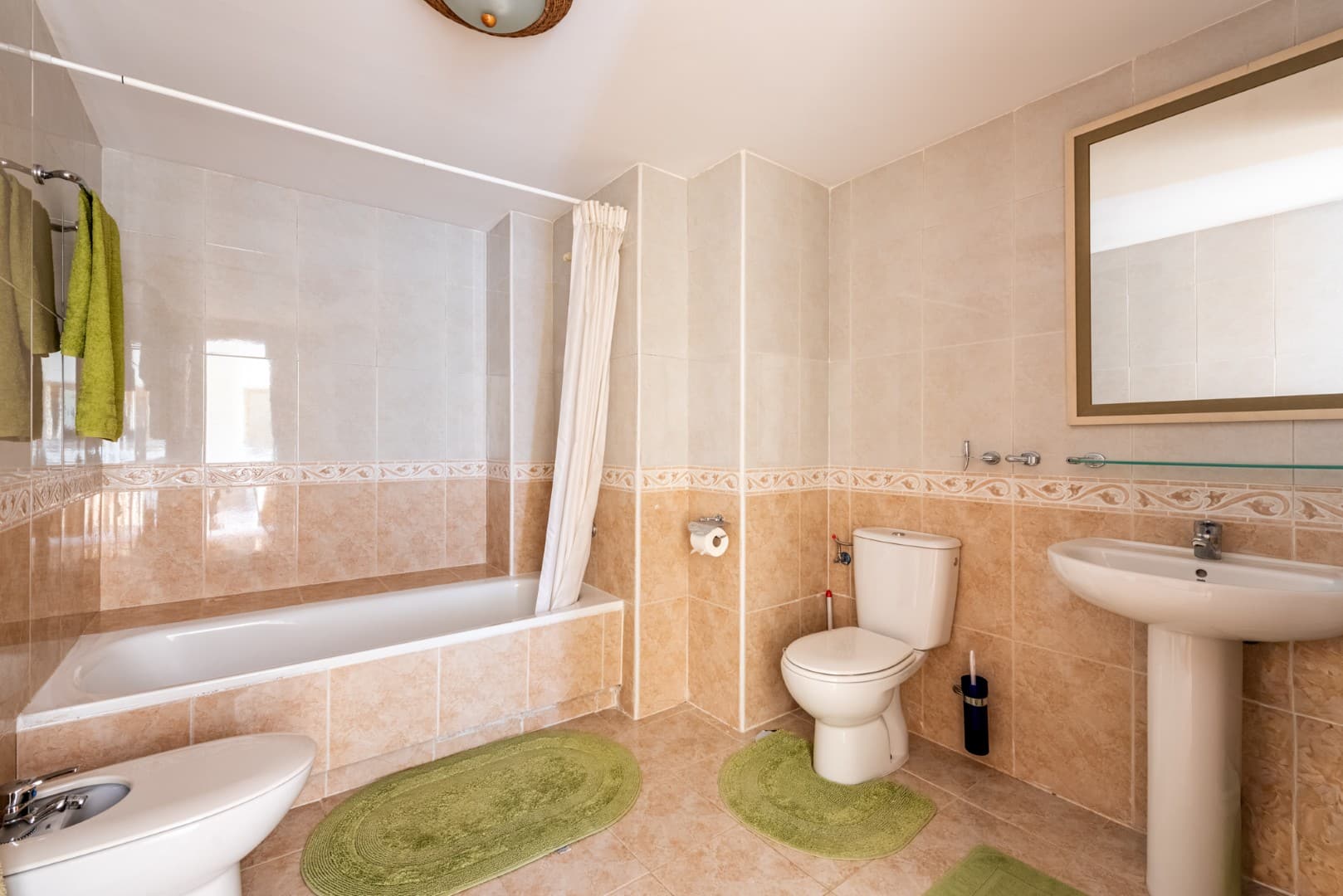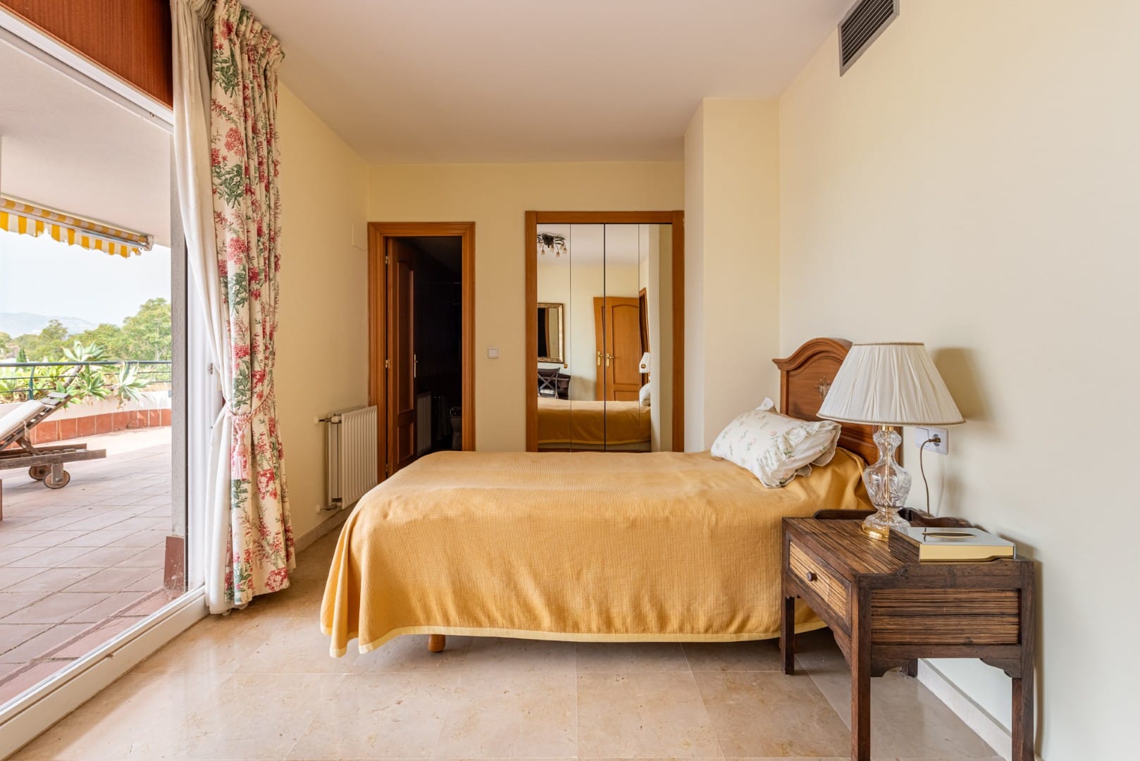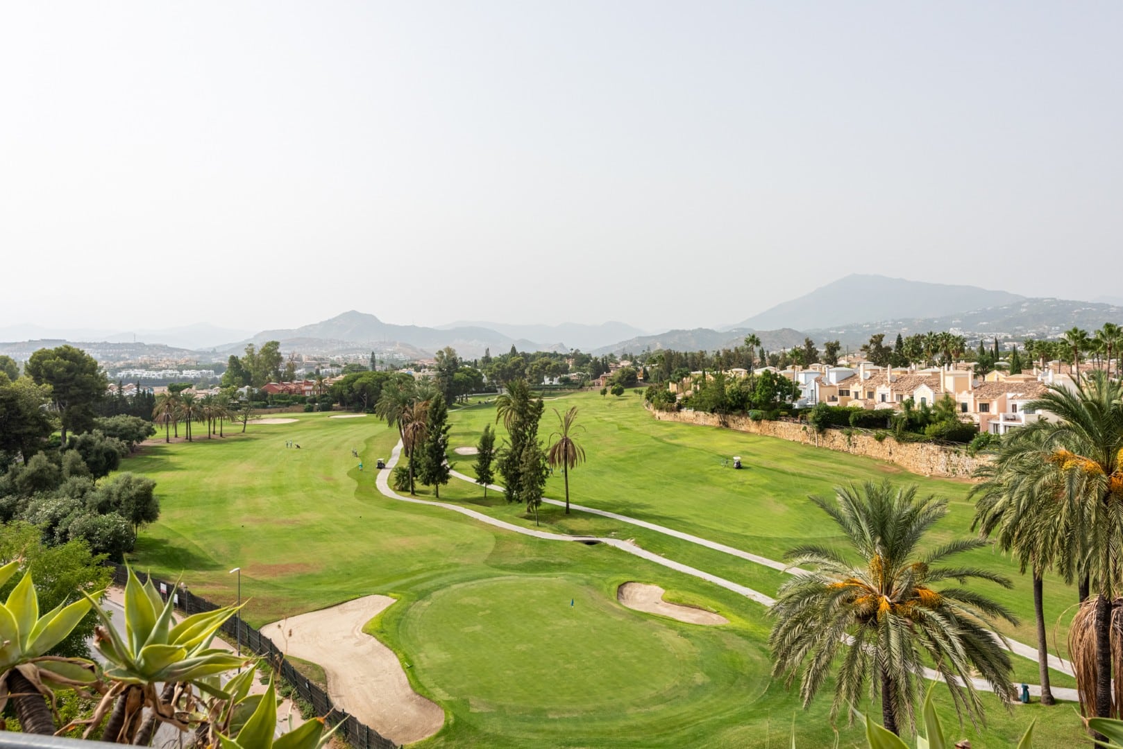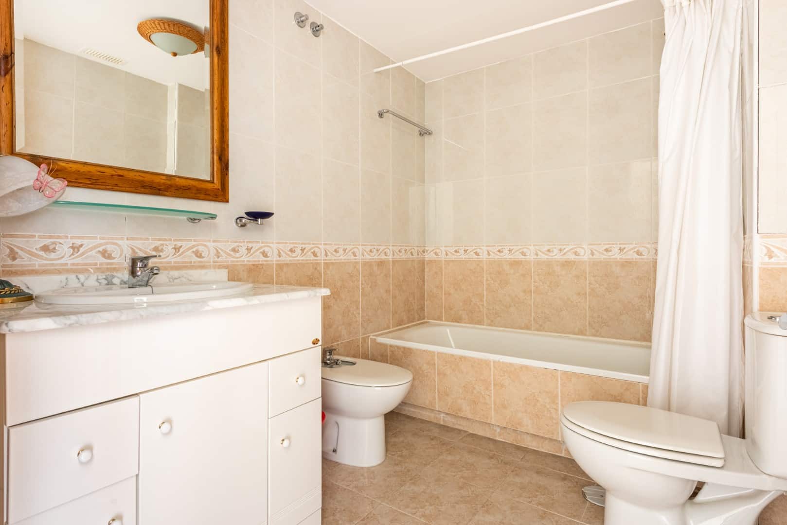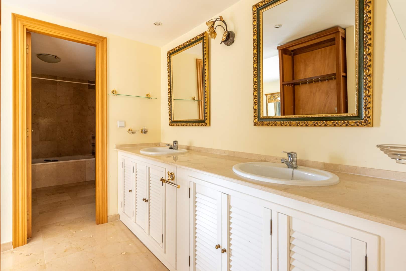 On the main floor, you’ll find a bright and spacious living room that opens onto a large terrace with stunning views of the Guadalmina Golf Course and surrounding mountains. This level also includes two guest bedrooms, one with an en-suite bathroom and both with access to a private terrace, as well as a separate guest bathroom.