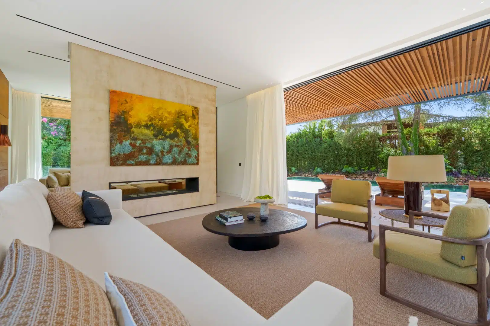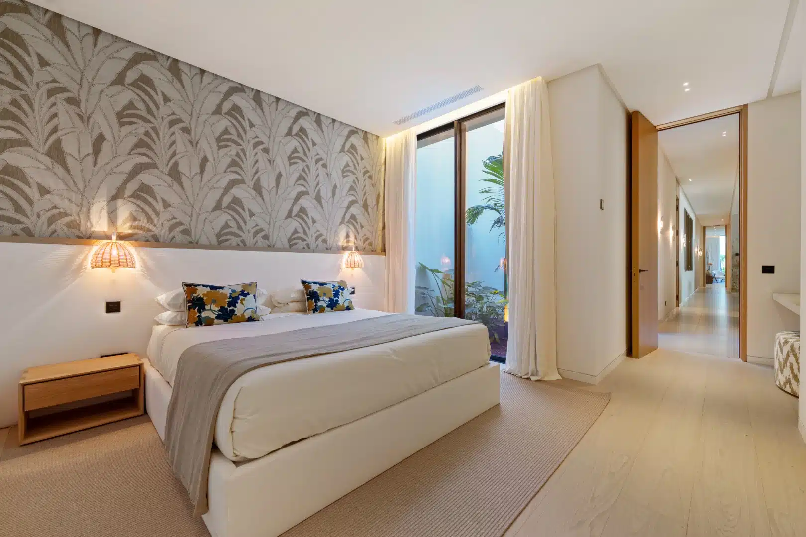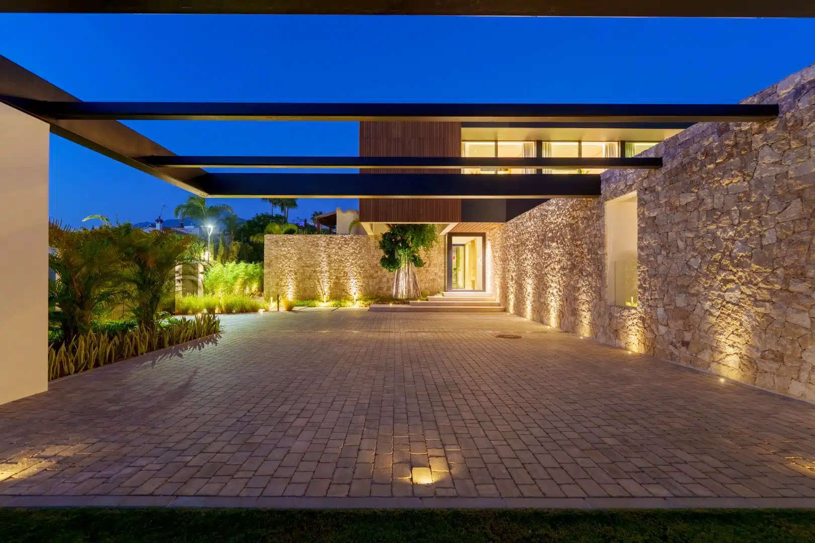 Casa Piemonte combines refined design, natural beauty nestled within the exclusive gated community of Parcelas del Golf. Just a short stroll from renowned restaurants, boutiques, and the beach, this villa offers the perfect balance of privacy and convenience. Step inside to the open-plan layout which seamlessly integrates the kitchen, dining, and lounge areas, with expansive sliding glass doors that disappear into the walls to create a fluid transition between indoor and outdoor living. This level also features a stylish en-suite bedroom for guests. The outdoor spaces are designed for relaxation and entertaining. Beside the pool, a charming gazebo hosts a fully equipped outdoor k...