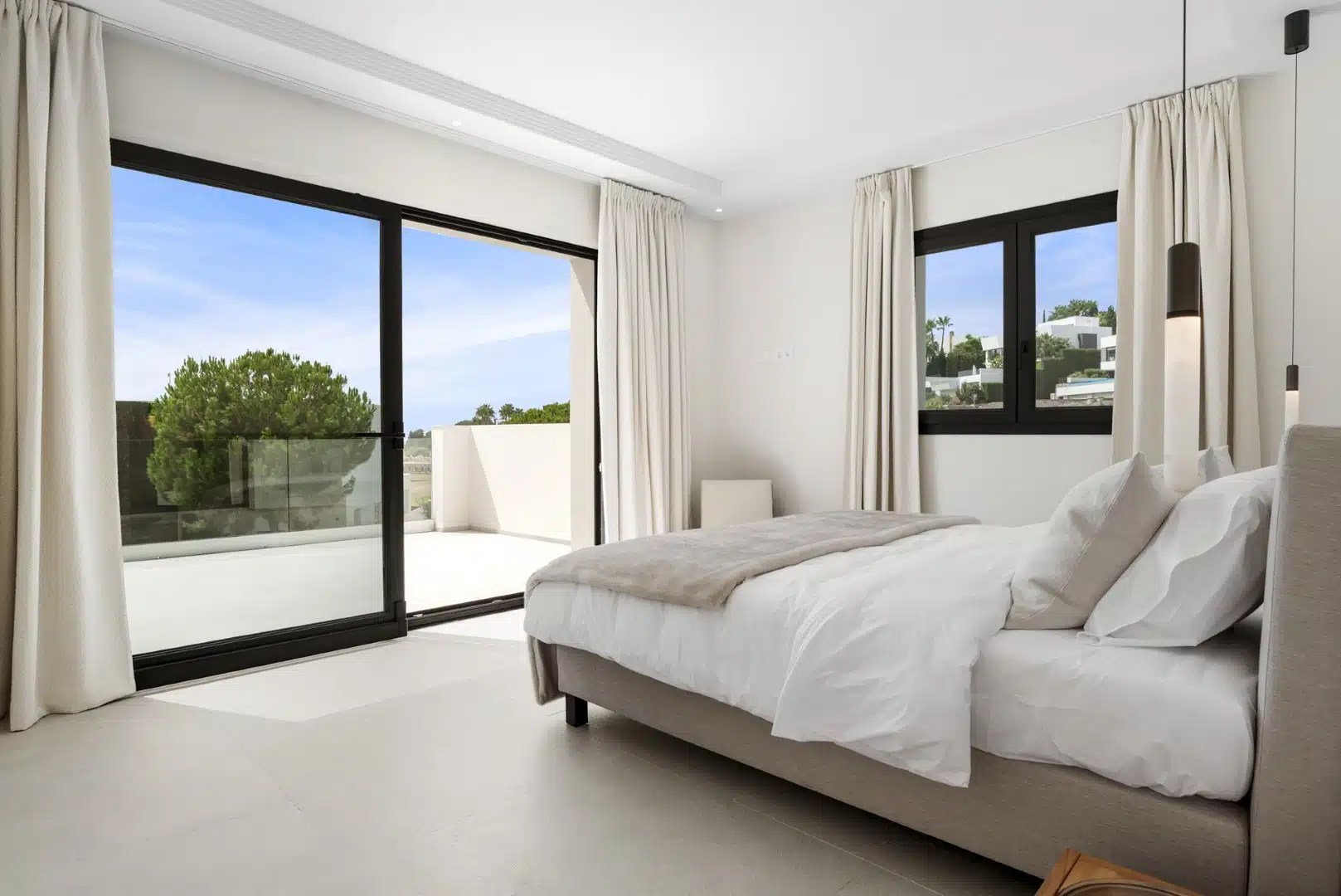 Welcome to a beautifully designed fully furnished 4-bedroom villa nestled in the sought-after community of La Alquería, Benahavís. Offering 24-hour security, this villa combines modern comfort, privacy, and style—perfect for those seeking a refined Mediterranean lifestyle. Step inside to a bright, open-plan layout featuring a fully fitted kitchen equipped with premium Miele appliances, flowing seamlessly into the spacious living and dining areas. Each of the four en-suite bedrooms is tastefully appointed, providing both comfort and privacy for residents and guests alike. Upstairs, a private terrace offers partial sea views, creating the ideal spot for morning coffee or relaxation...