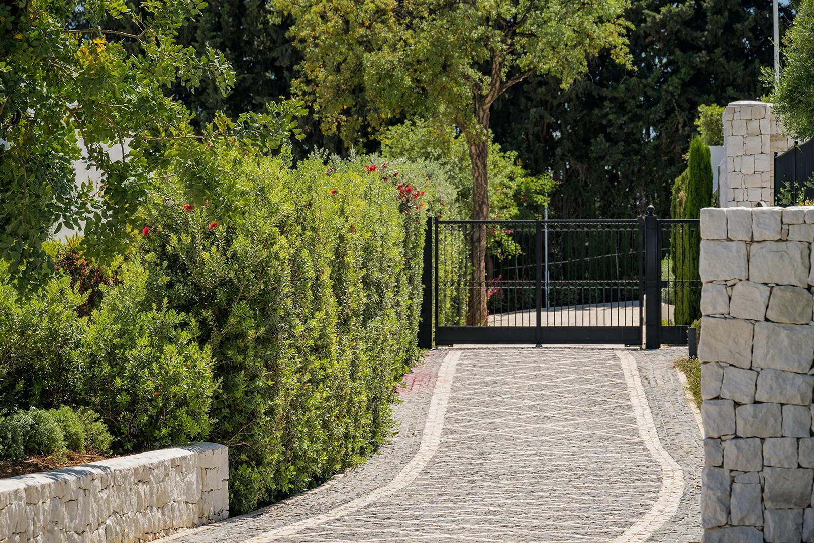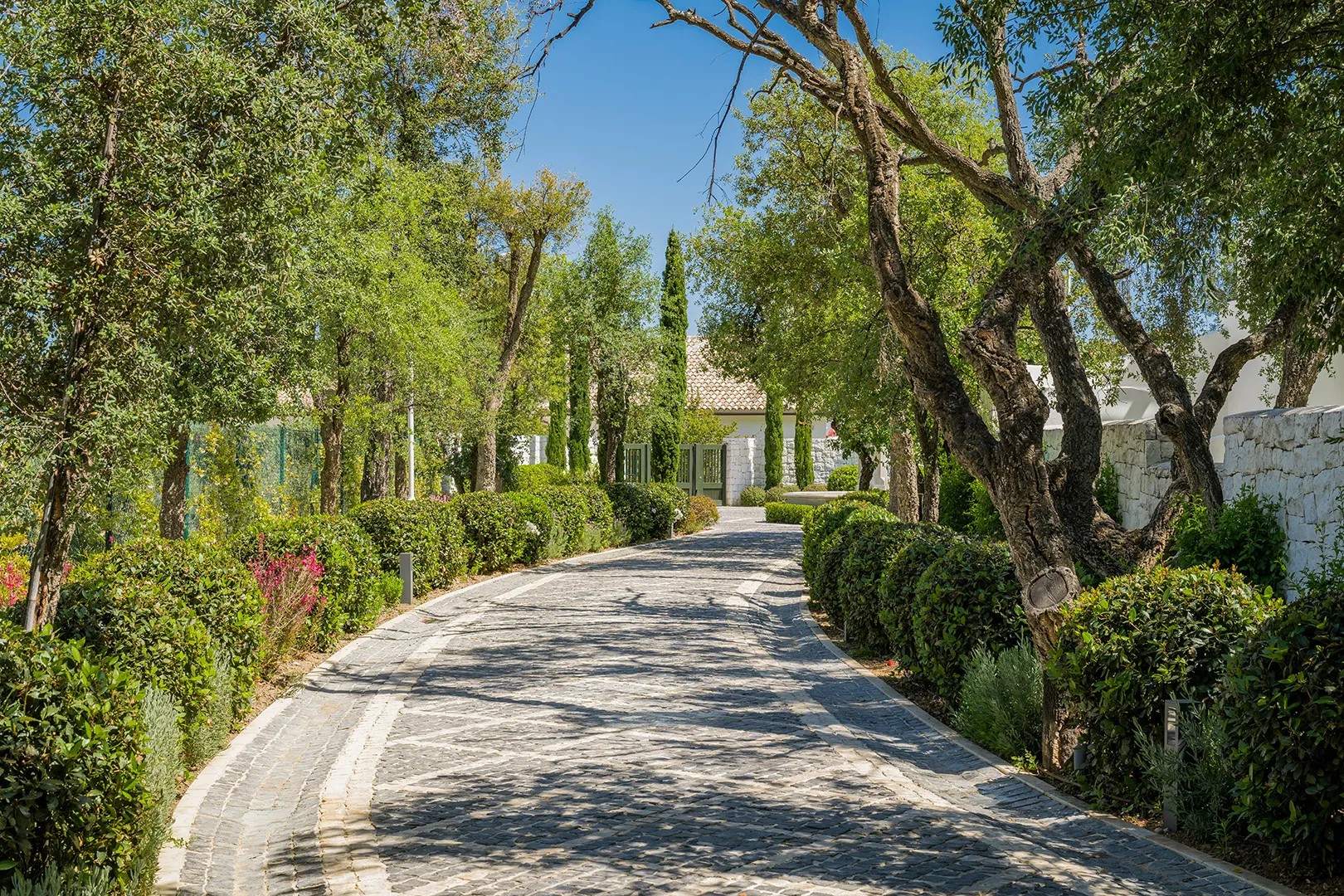 The lush, beautifully landscaped plot is surrounded by mature Mediterranean gardens, highlighted by majestic olive trees. Expansive outdoor spaces include a stunning heated pool with jacuzzi, a stylish chill-out zone perfect for sunbathing, a fully-equipped outdoor gas kitchen, and a spacious, elegant terrace—ideal for relaxing in a peaceful setting year-round.