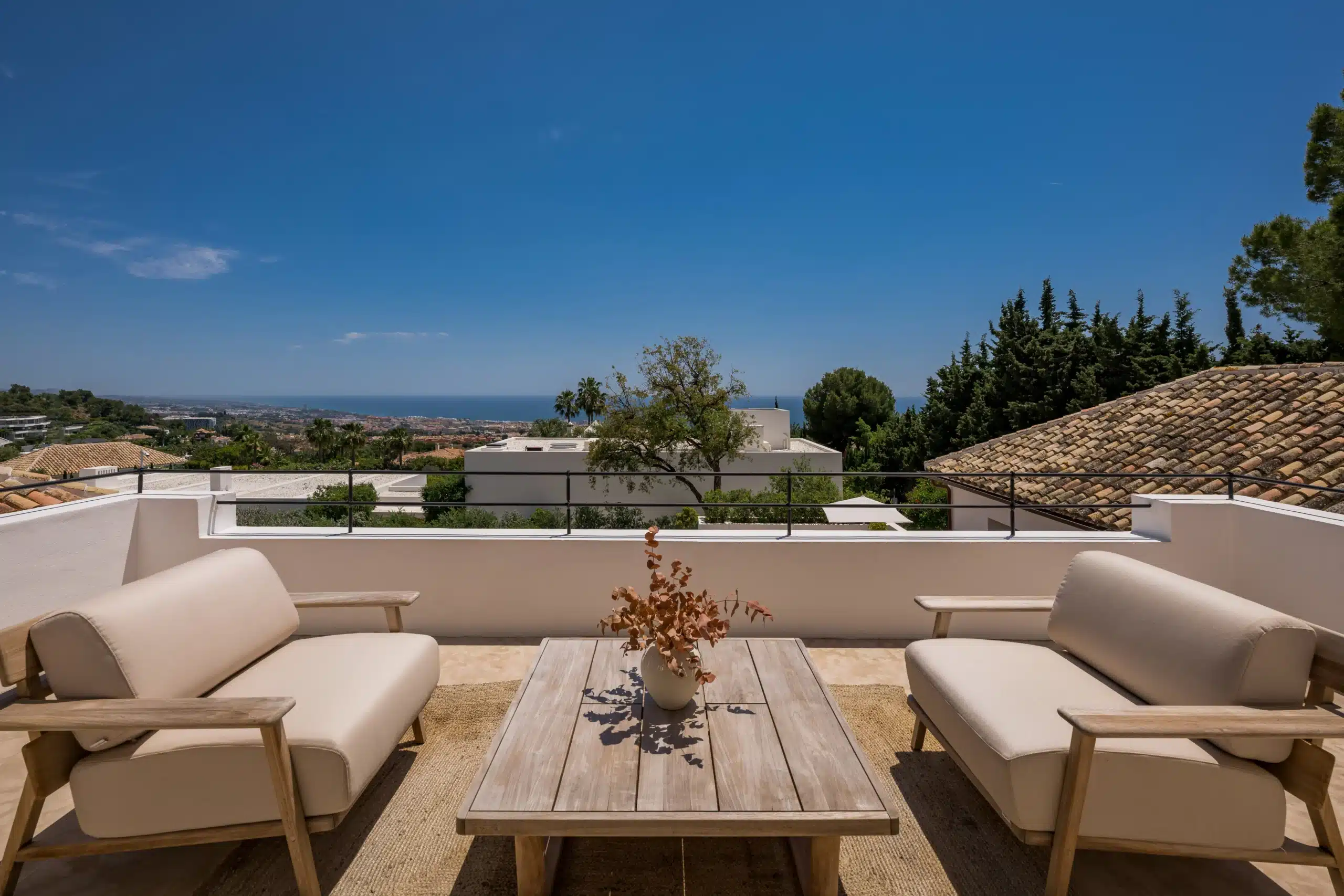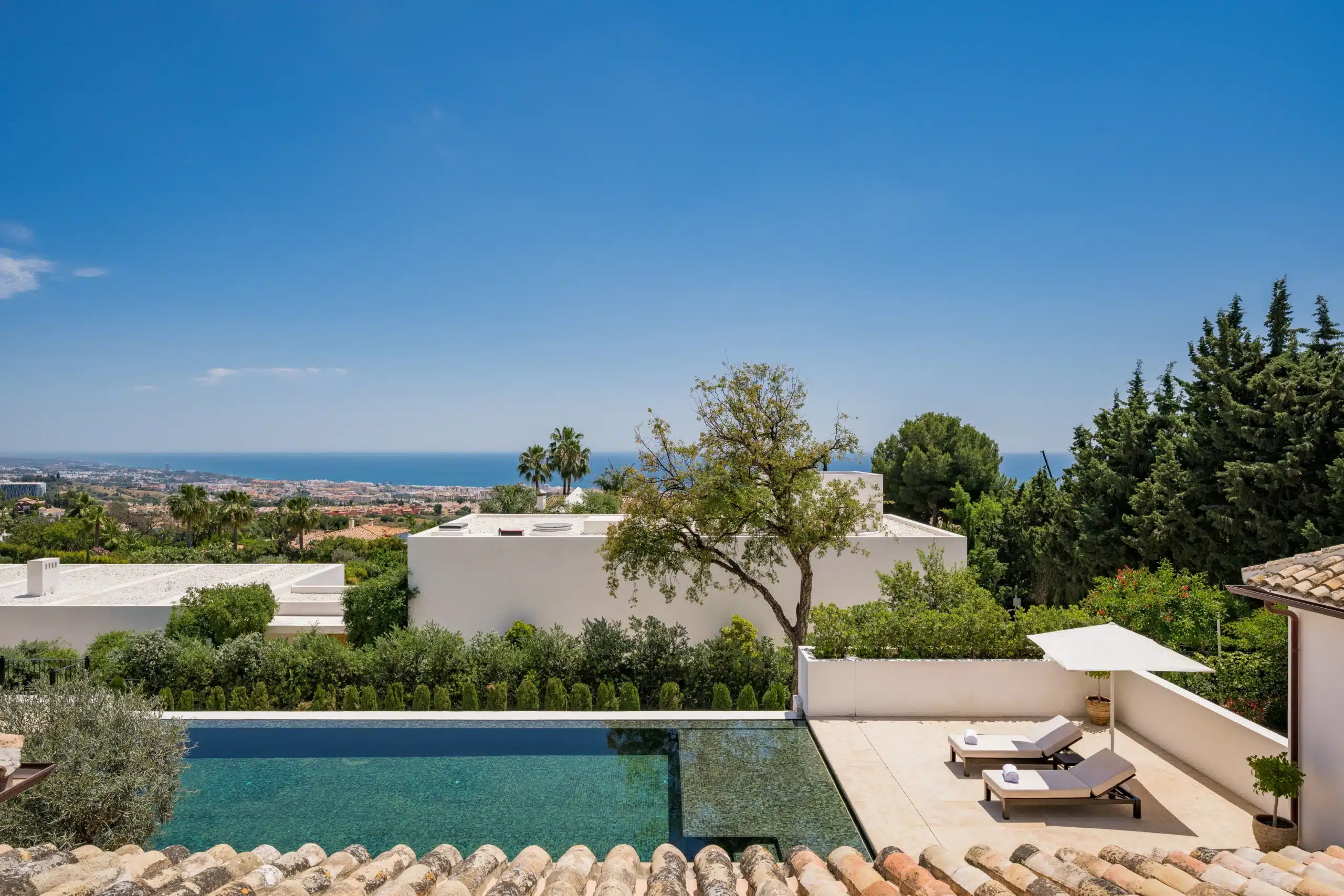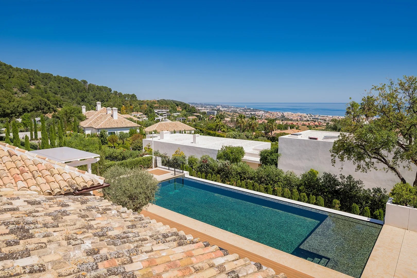 The villa is just minutes from the world-renowned five-star hotels Puente Romano and Marbella Club, as well as the glamorous Puerto Banús. Residents benefit from proximity to luxury amenities, pristine beaches, international schools, and Marbella’s charming old town—all while enjoying complete privacy in an exclusive enclave. Elevated above the coast, the villa boasts breathtaking panoramic views of the Mediterranean Sea.