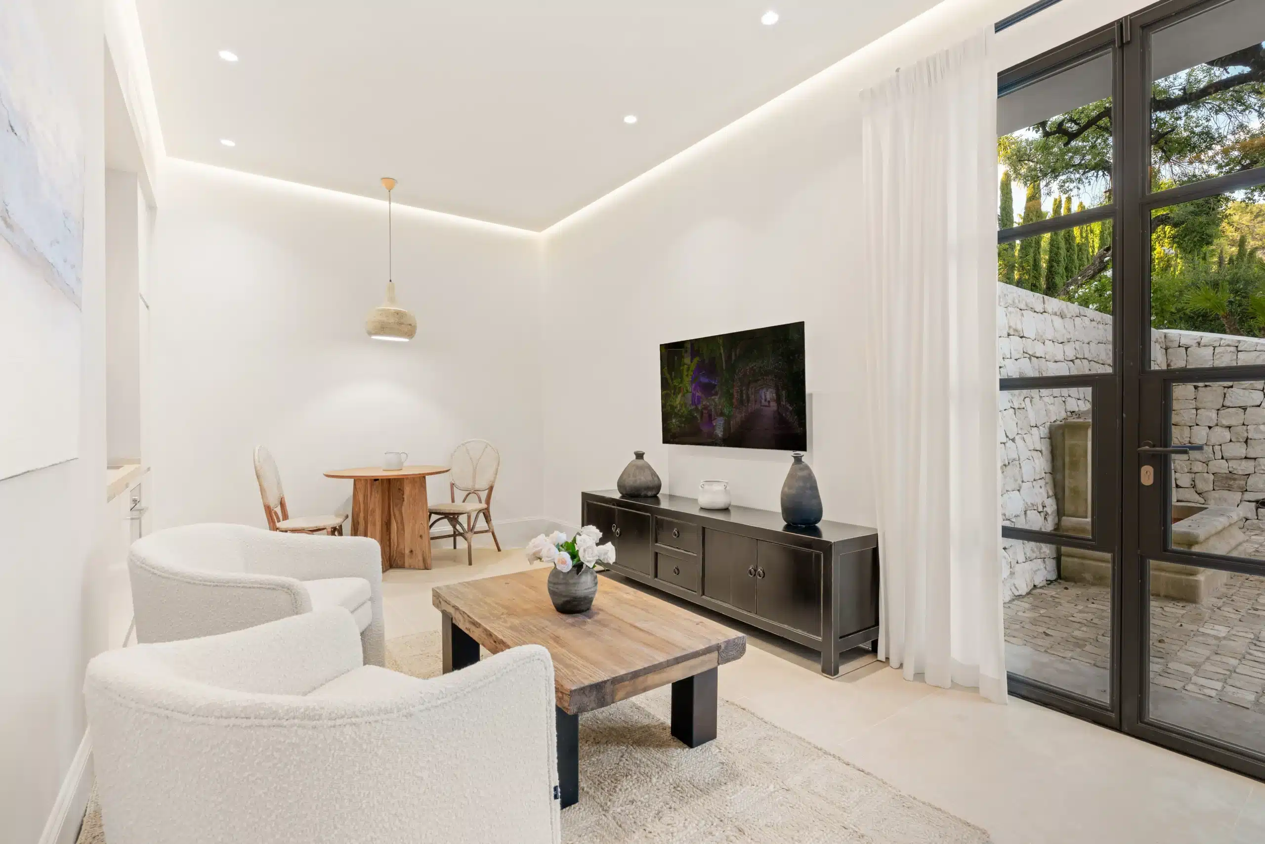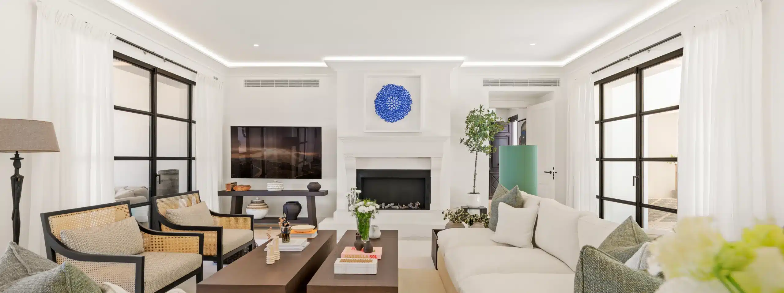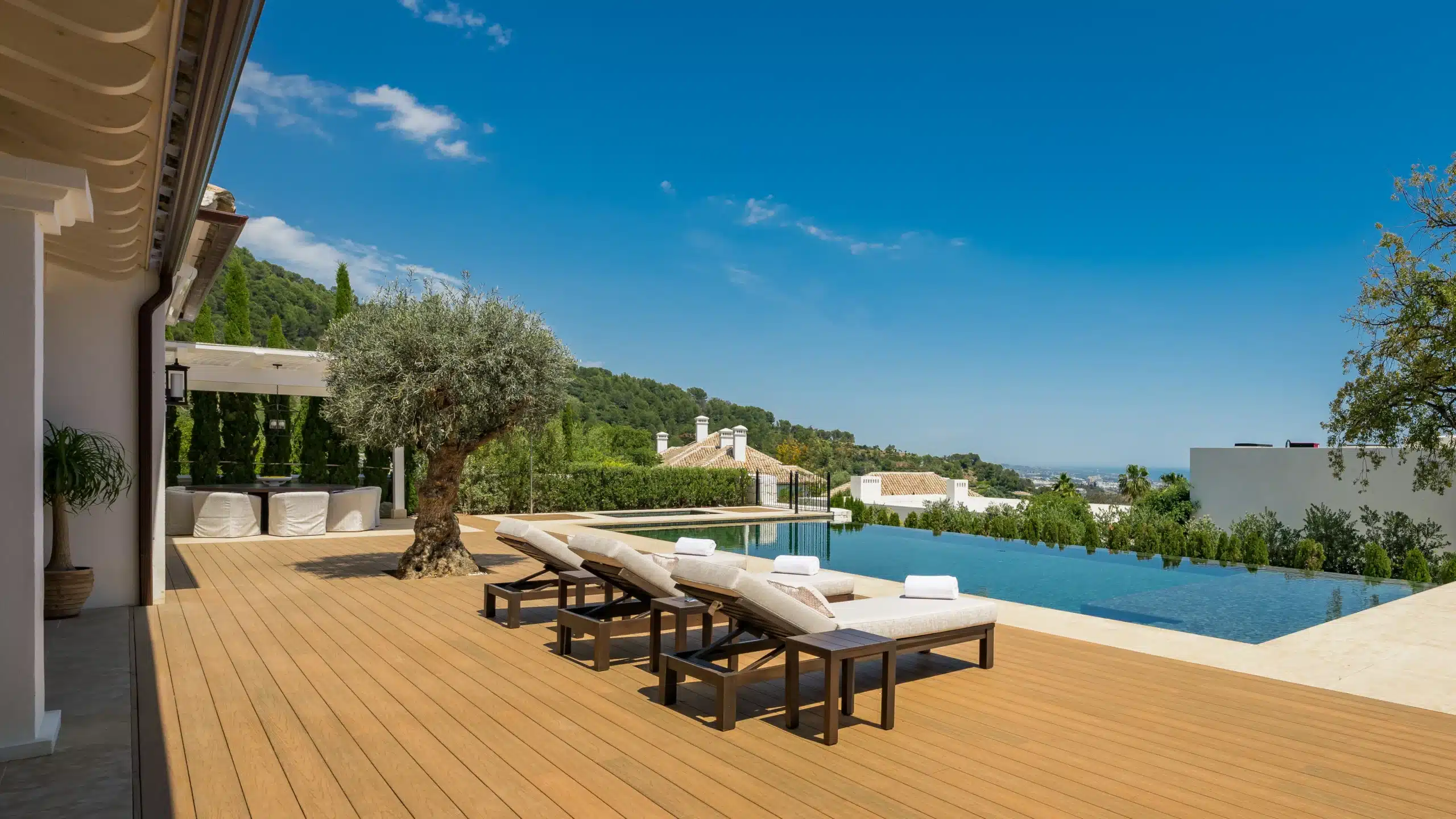 The villa is just minutes from the world-renowned five-star hotels Puente Romano and Marbella Club, as well as the glamorous Puerto Banús. Residents benefit from proximity to luxury amenities, pristine beaches, international schools, and Marbella’s charming old town—all while enjoying complete privacy in an exclusive enclave. Elevated above the coast, the villa boasts breathtaking panoramic views of the Mediterranean Sea.