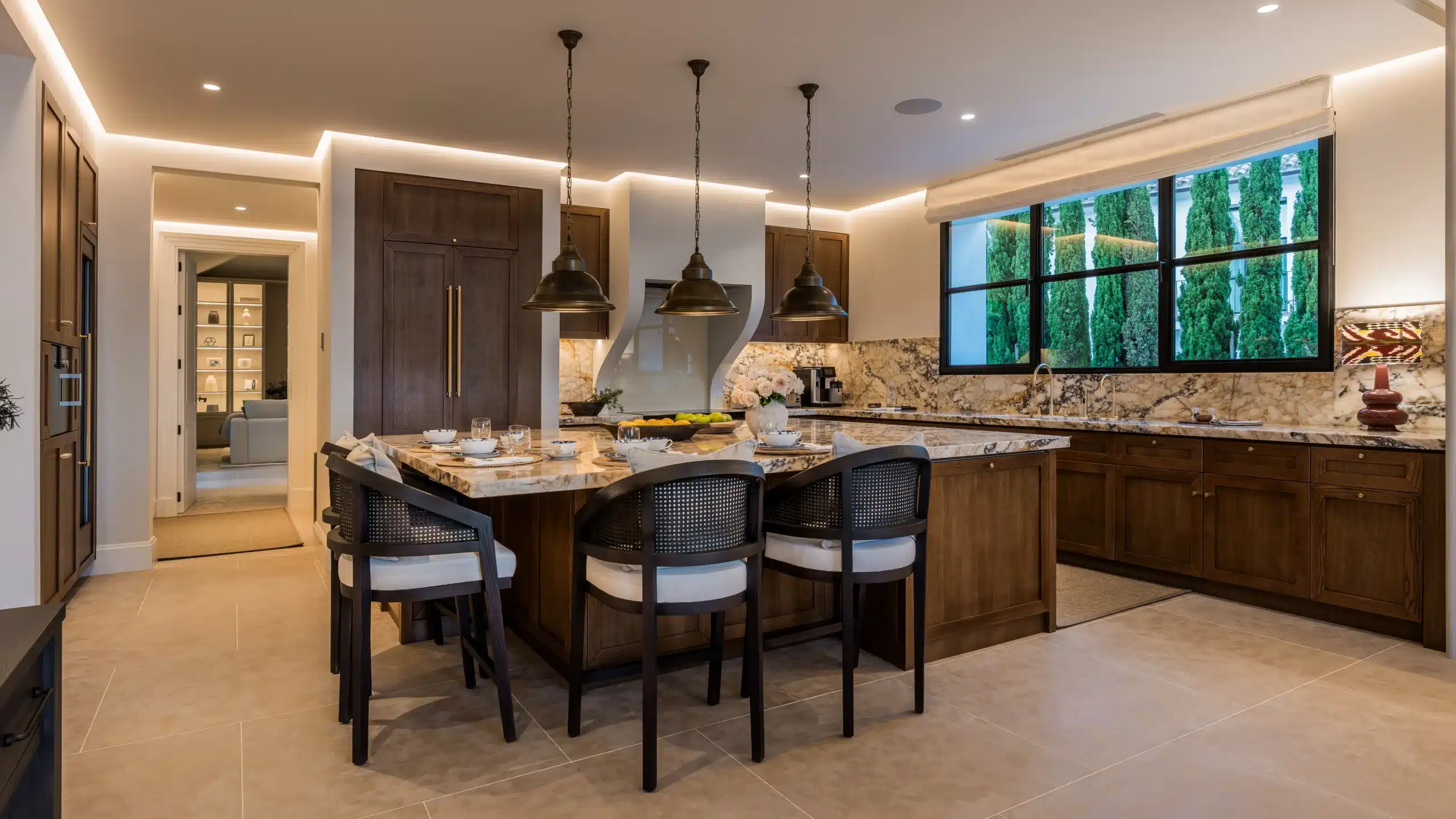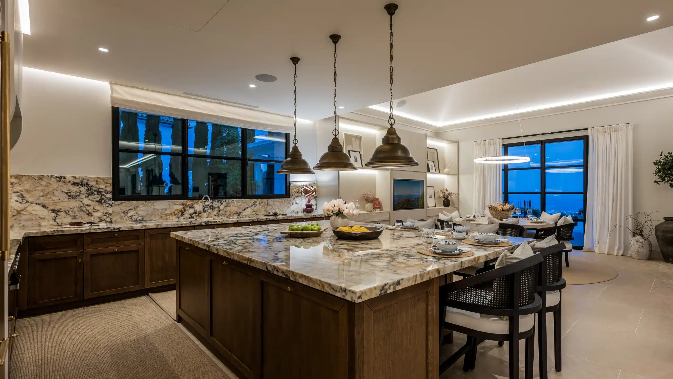 Inside, the villa features five luxurious en-suite bedrooms, six bathrooms and one guest bedroom in the second building. It was all designed with exquisite attention to detail by acclaimed interior architect Rina Rankova. Every space is enhanced by cutting-edge home automation and state-of-the-art security, including video entry, an advanced alarm system, and perimeter surveillance cameras.