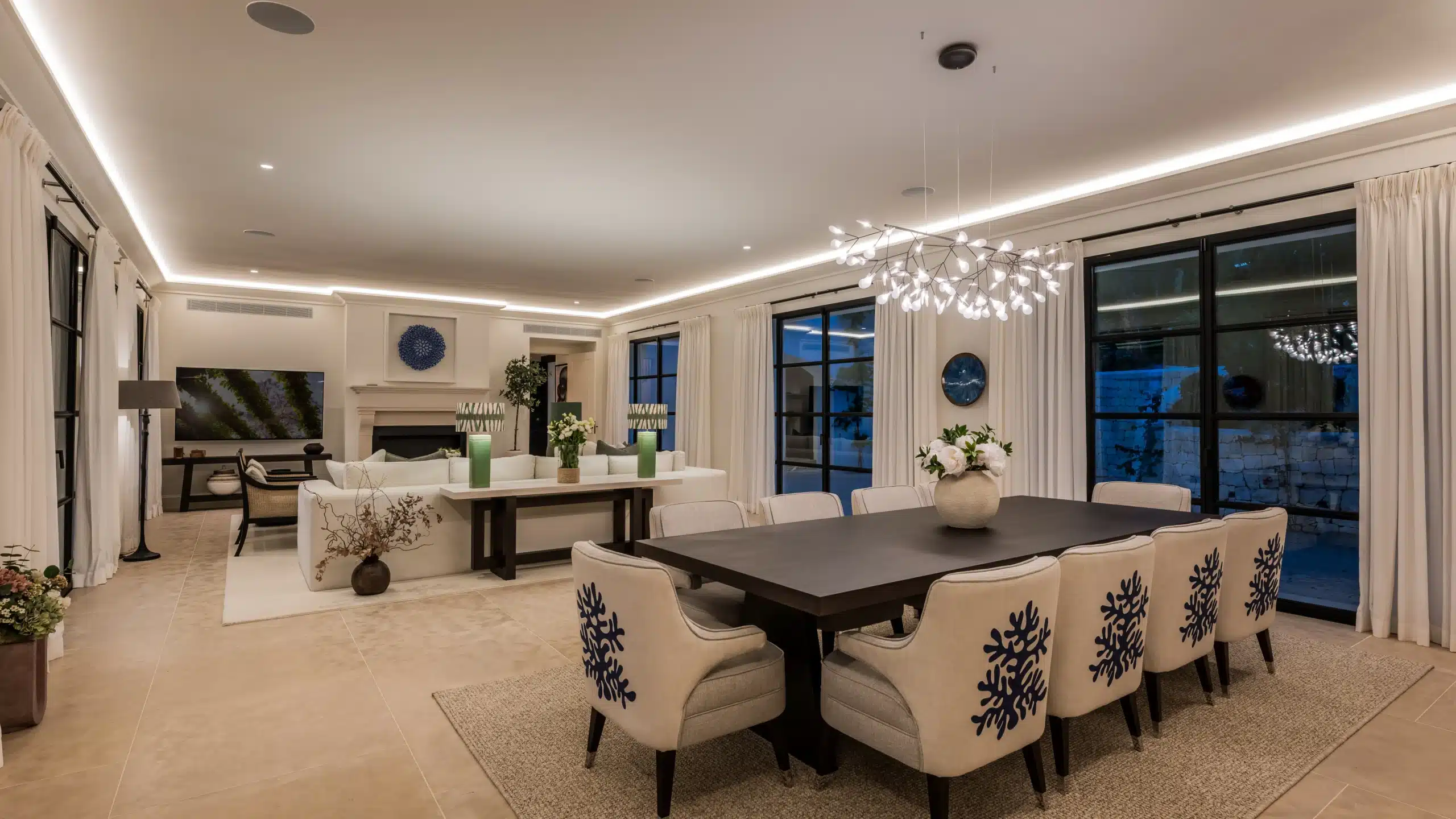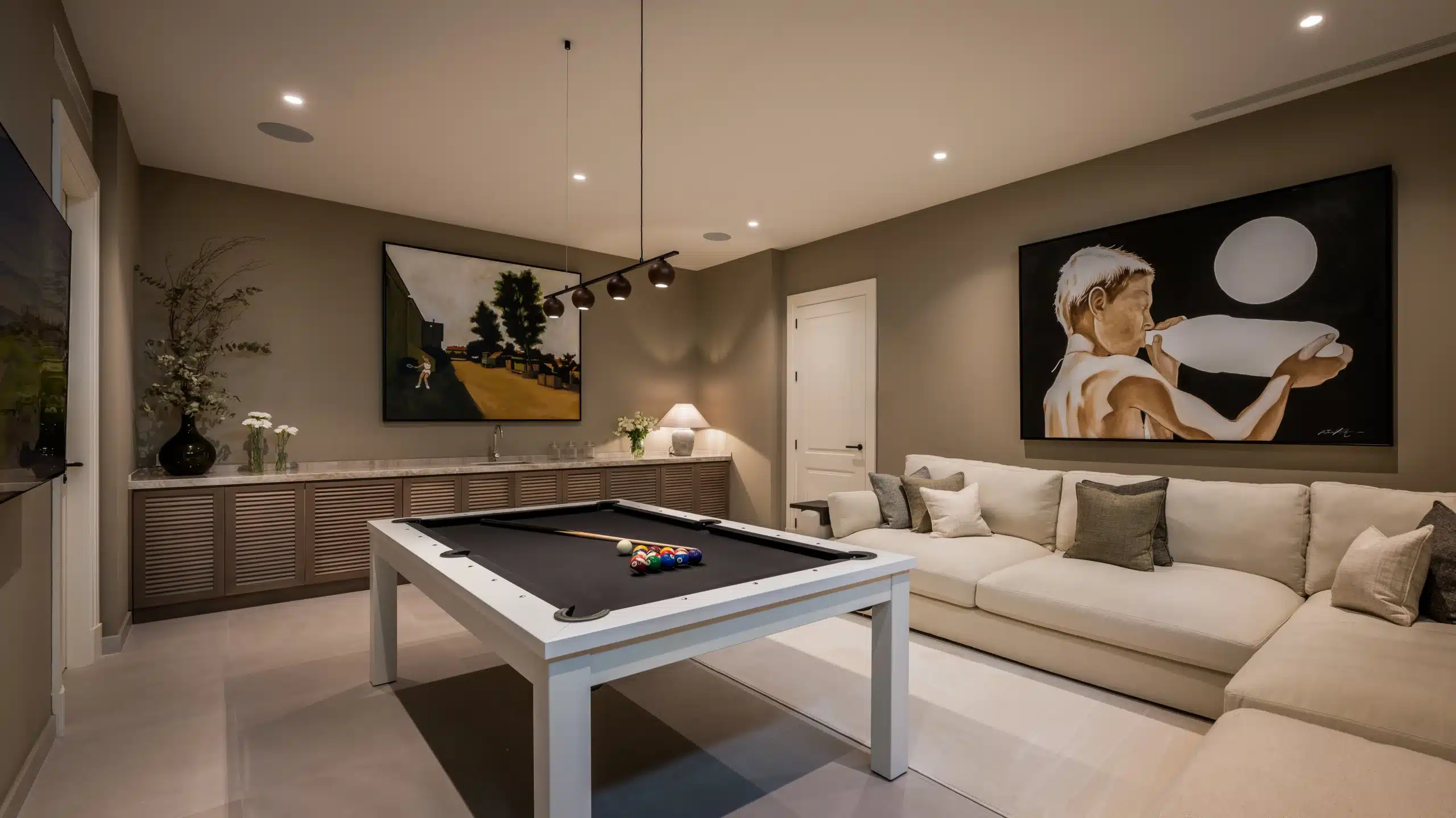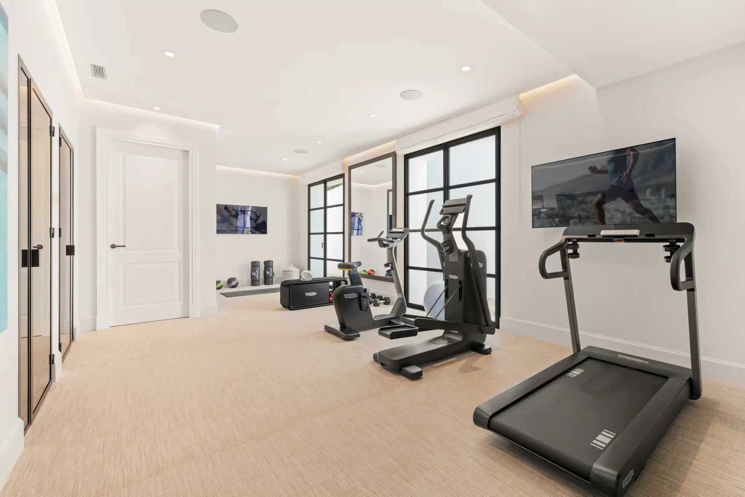 Built to the highest standards, the home includes a gourmet kitchen with Lacanche appliances, a haven for culinary enthusiasts. Additional features include a private gym, two cozy fireplaces, a cinema room, a games room, sauna, and a generous space easily adaptable into a home office or library.