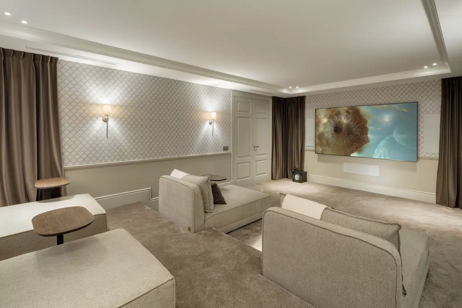On the lower floor, the villa is geared toward lifestyle and relaxation. A private cinema room, massage suite, fully equipped gym, and a cinema room provide a wide array of leisure options for residents and guests. A temperature-controlled wine cellar. This level also houses full service quarters, two ensuite bedrooms and a kitchenette, supporting the functionality of the household without compromising on privacy.