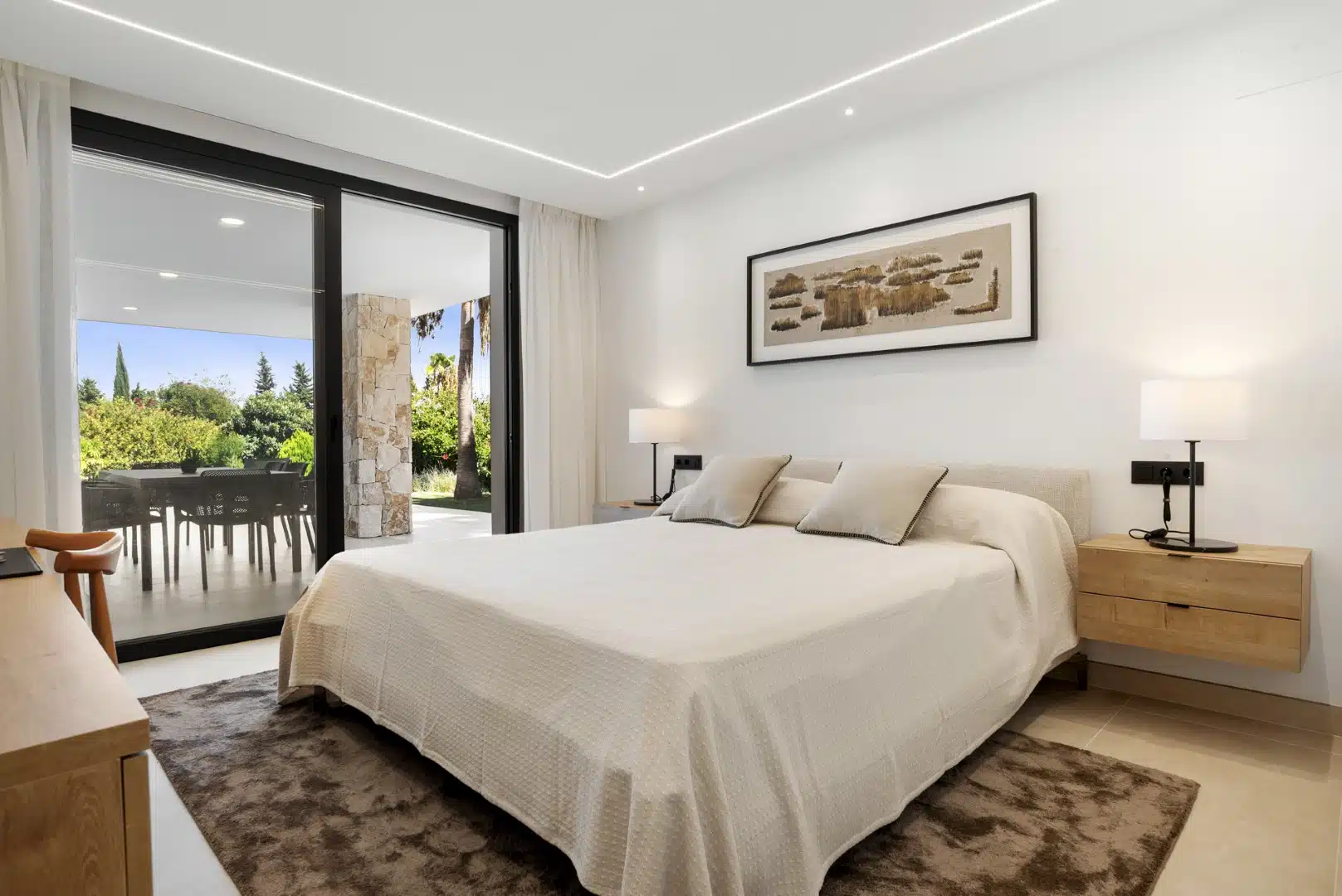 Step into refined Mediterranean living with this stunning fully furnished villa, ideally located just a short walk from the prestigious Guadalmina Golf Club and minutes from the beach. The villa boast 4 spacious, sun-filled bedrooms along with 4 modern bathrooms. The villa has a sleek open-plan kitchen with a central island and top-tier appliances leading onto an expansive living and dining area with seamless access to the terrace. There is a beautifully landscaped garden with a private pool, and a large rooftop terrace with sea and mountain views. The wardrobes are built in and illuminated with LED features. There is a large covered garage for one car, and a charging point for s...