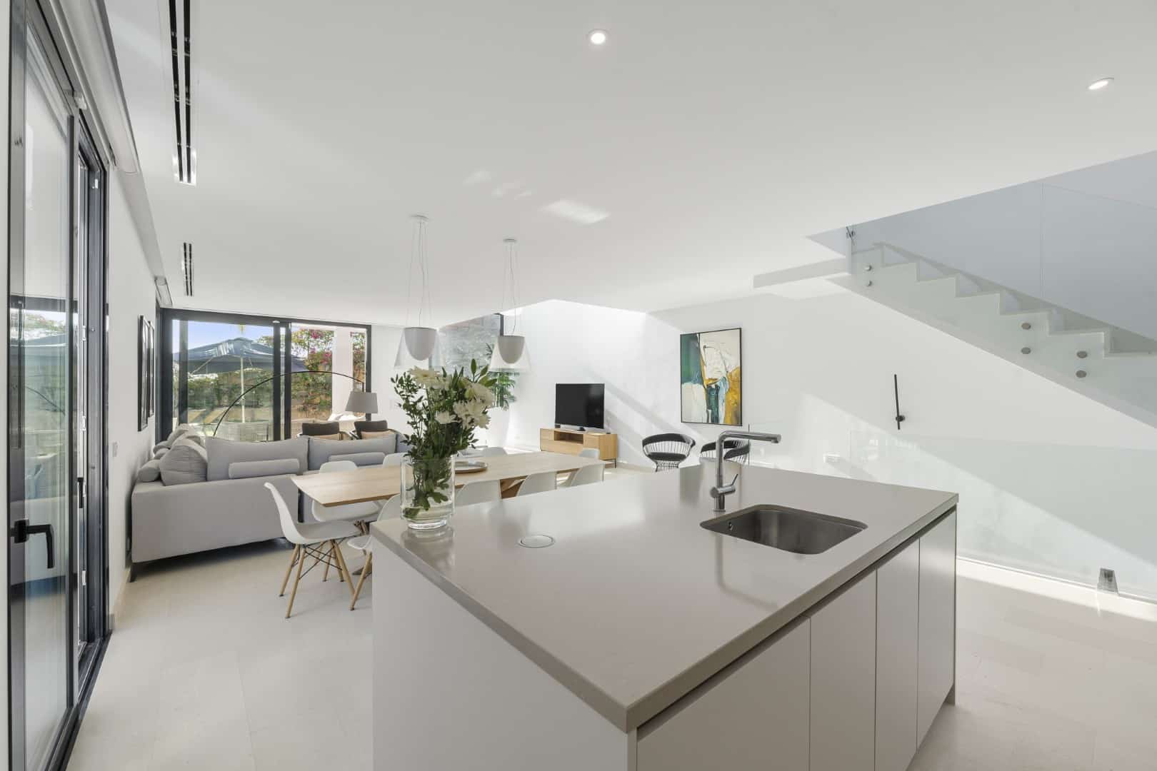The semi-detached villa is tastefully furnished throughout, with high-quality kitchen and dining finishes and carefully selected garden furniture, ensuring maximum comfort in every corner of the home.