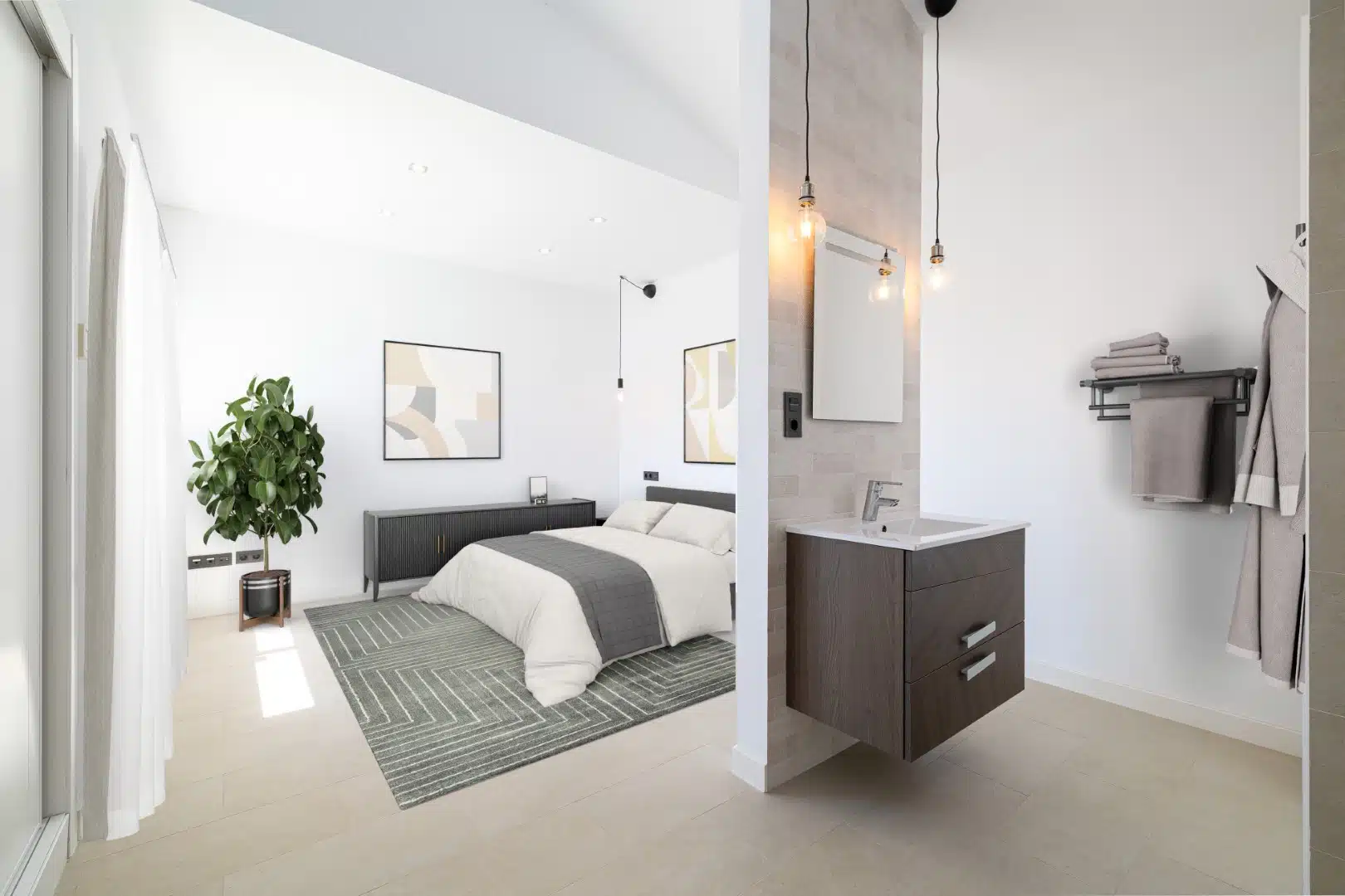 A private garage and ample parking facilitate convenience, while the gated community ensures security and exclusivity. High-end features such as underfloor heating throughout, air conditioning, double glazing, an advanced alarm system, and fibre optic internet reflect the villa’s commitment to luxury and comfort.
