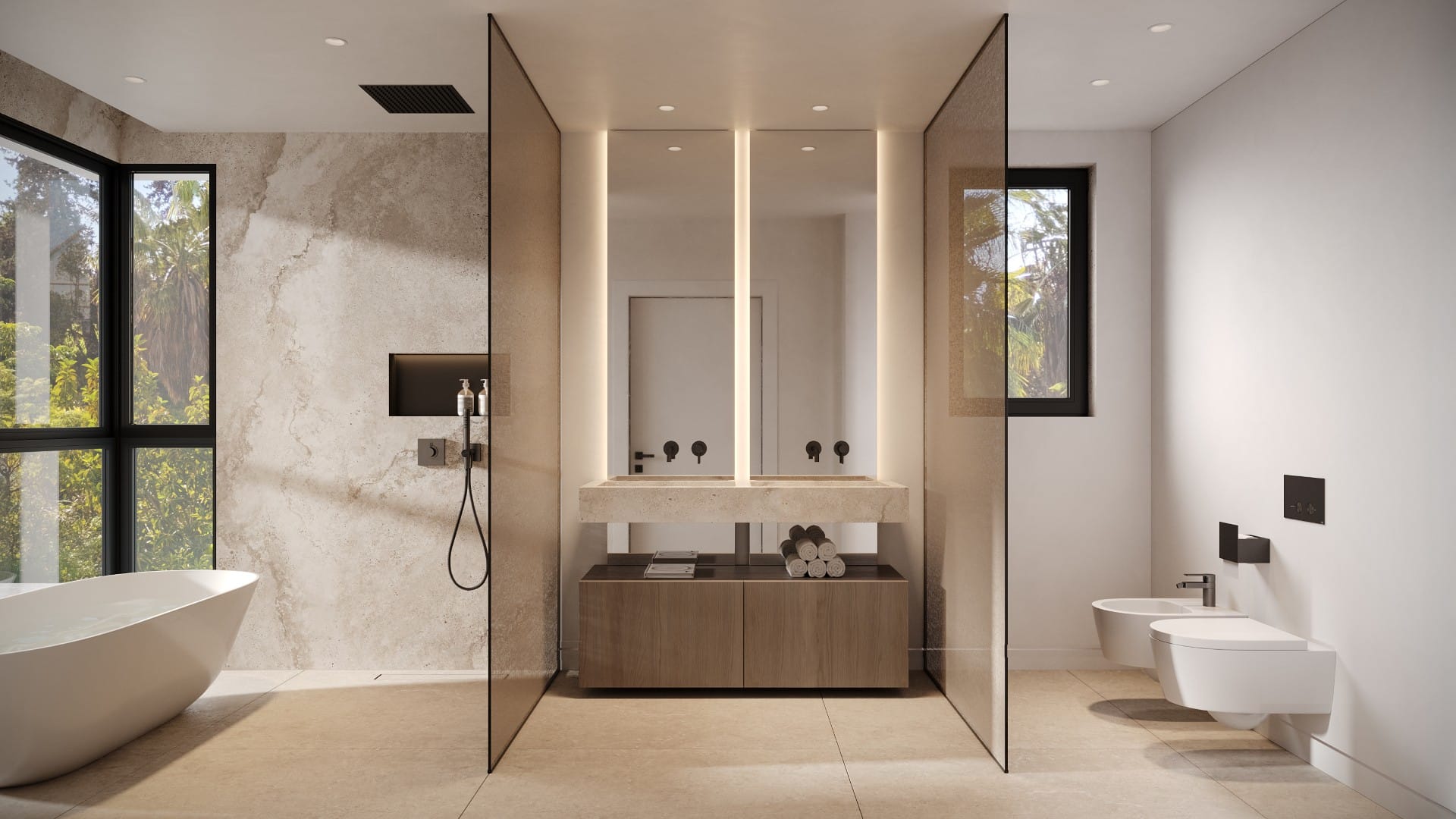 The villas are perfectly positioned between the Mediterranean sea and the Sierra Blanca mountains. The project captures modern Mediterranean living through refined architecture and open spaces offering privacy, elegance and proximity to Marbellas most iconic destinations.