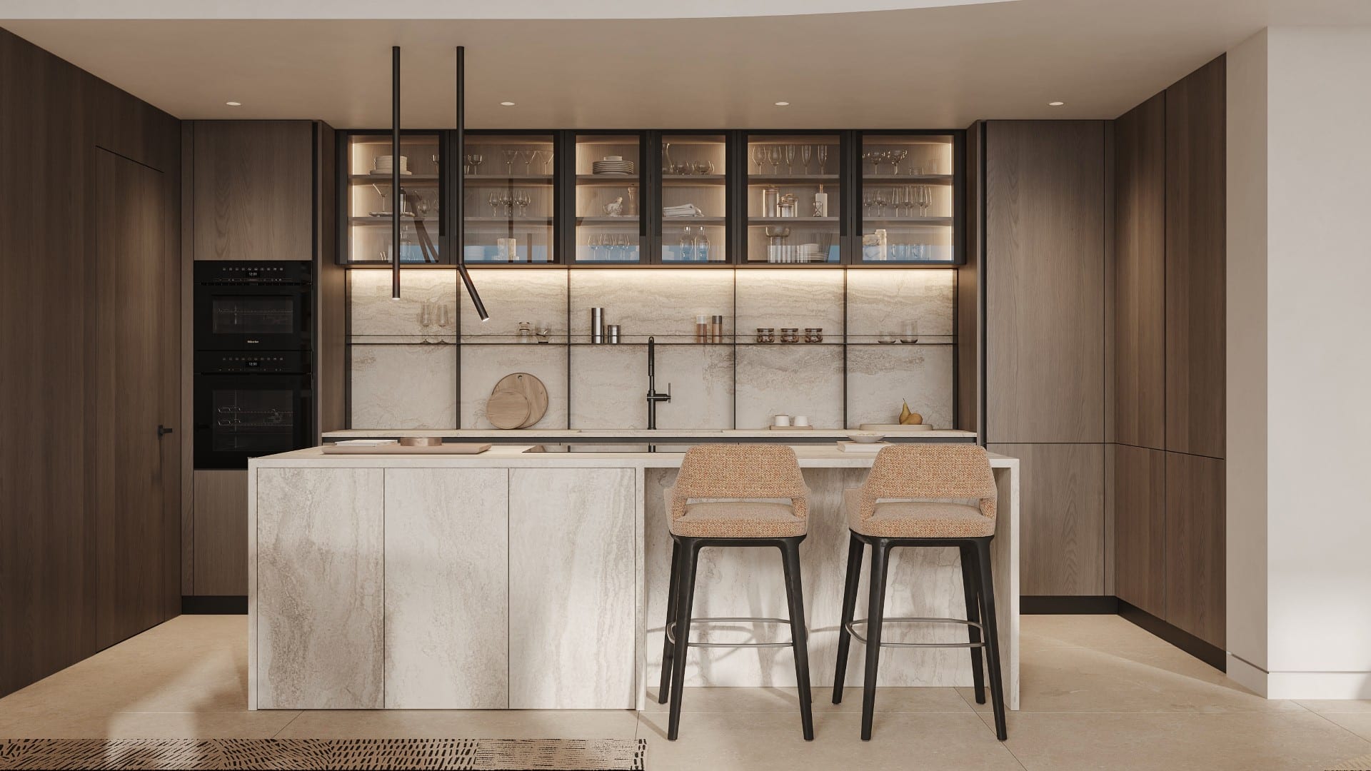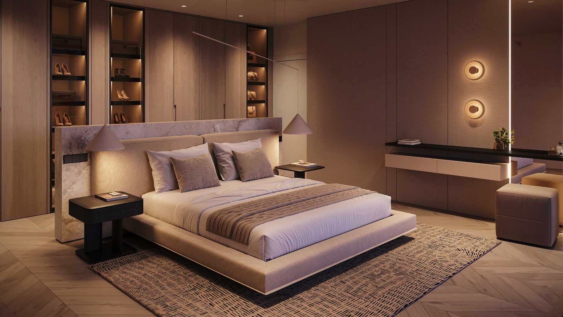 Sky villa is the most elevated of them all combining grand scale with refined detailing. This residence offers over 1054m² of built area with 575m² of interior and 479m² of exterior on a 1191m² plot featuring a private lift, wellness and leisure areas, a rooftop terrace with an outdoor kitchen and sweeping views of both the sea and the mountains.