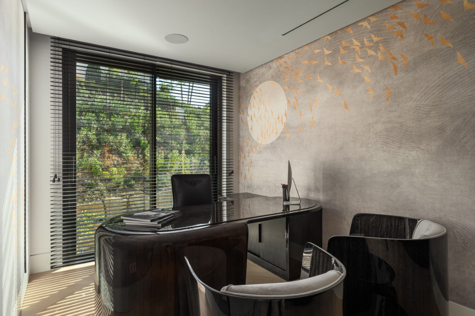 The residence also boasts a home office, bespoke bar and entertainment room, as well as a home gym, Turkish bath and indoor pool. The property also boasts an impressive solarium equipped with an outdoor kitchenette. Attention to detail is evident throughout the property, with the finer accents being a true masterpiece.