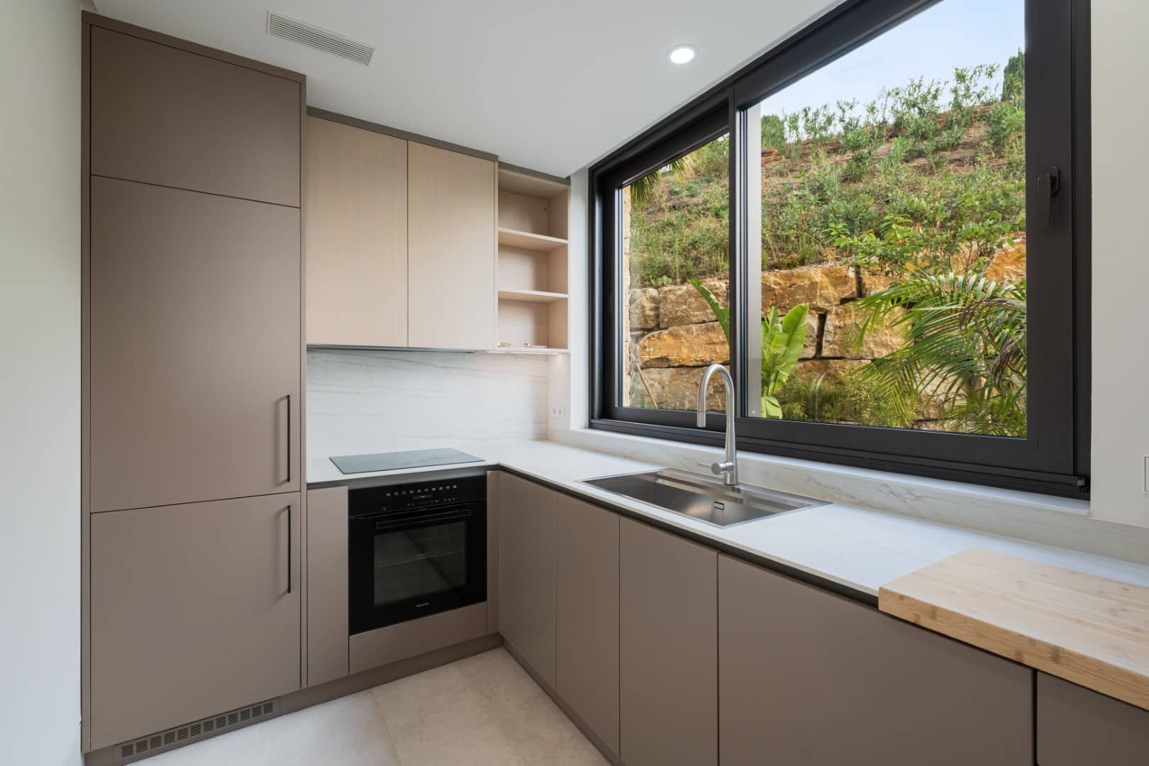 Welcome to this newly built five bedrooms villa in Marbella Hill Club, Marbella Golden Mile. The interiors are unique as the designers opted for a soothing and neutral palette, using natural elements such as wood and marble to enhance the feeling of luxury.