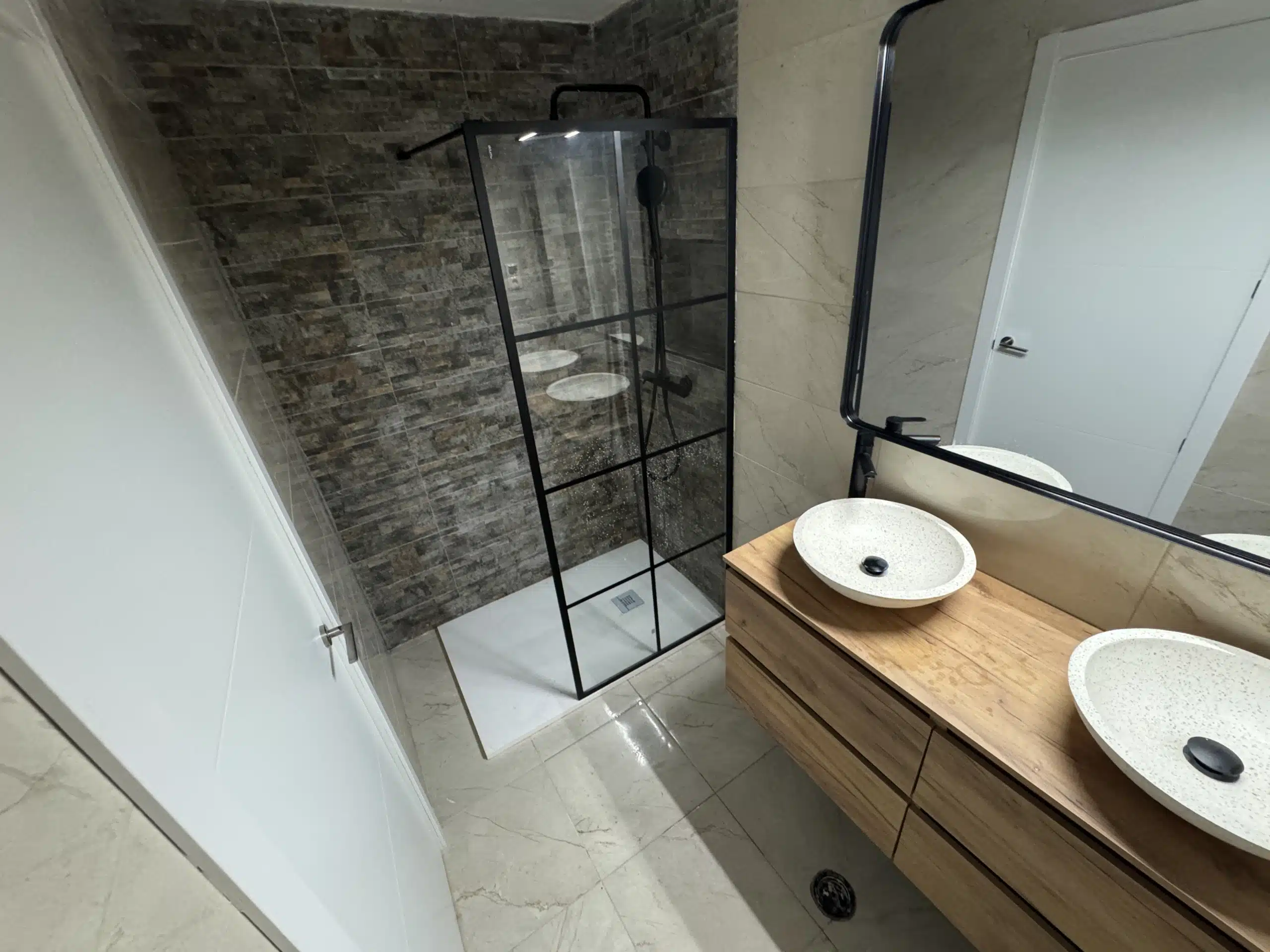 This renovated apartment offers 109 m² of modern living space, thoughtfully redesigned to provide comfort and style. The home includes three bedrooms and two bathrooms — one en-suite and one additional bathroom — both featuring a walk-in shower and designer finishes.